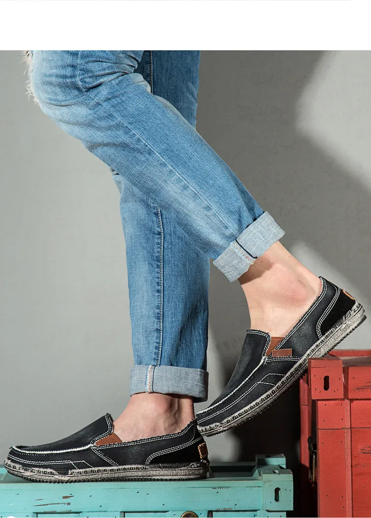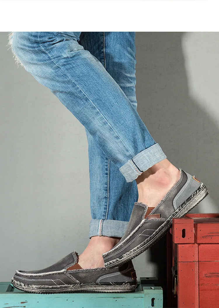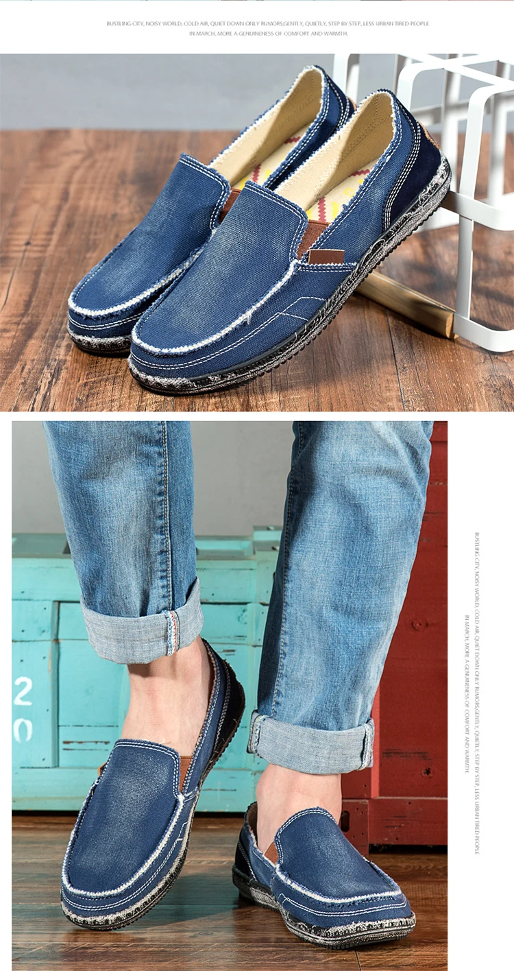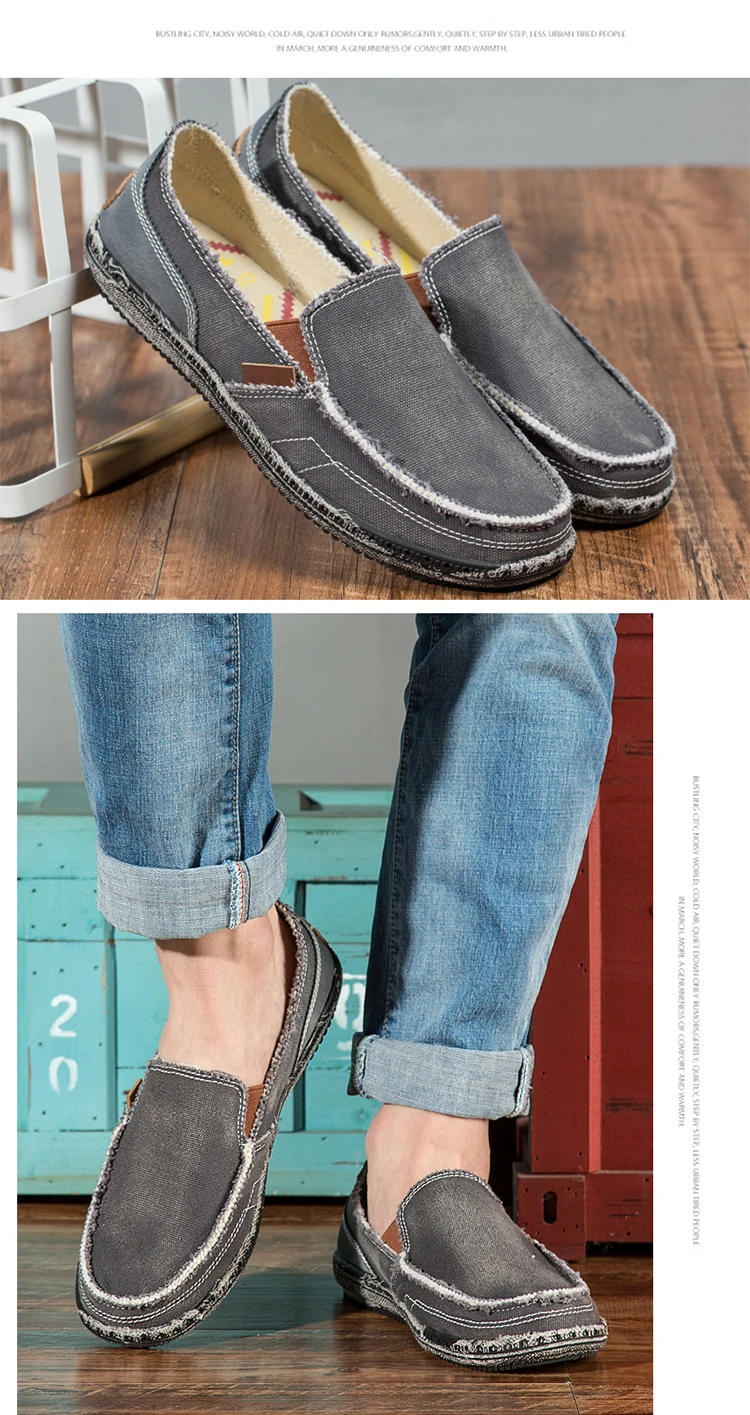 Мужские классические парусиновые кроссовки, повседневная обувь для отдыха, Мокасины, лоферы, без застежки, потертые джинсовые, плоская подошва, новая обувь