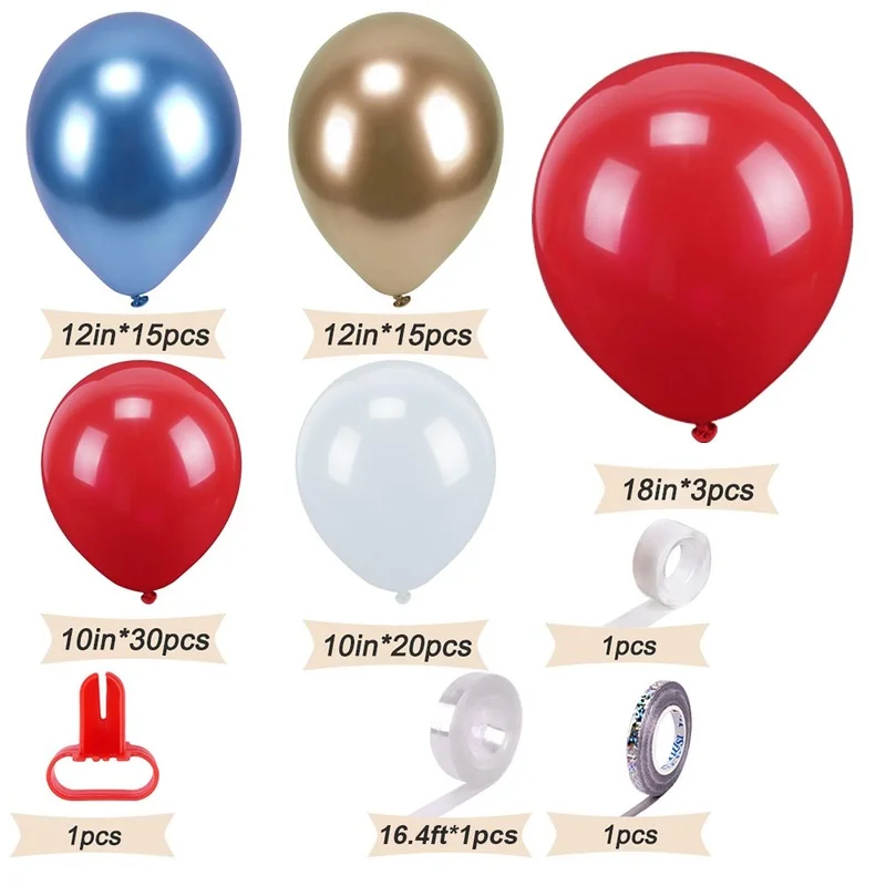 112 шт., красные и синие металлические латексные воздушные шары
