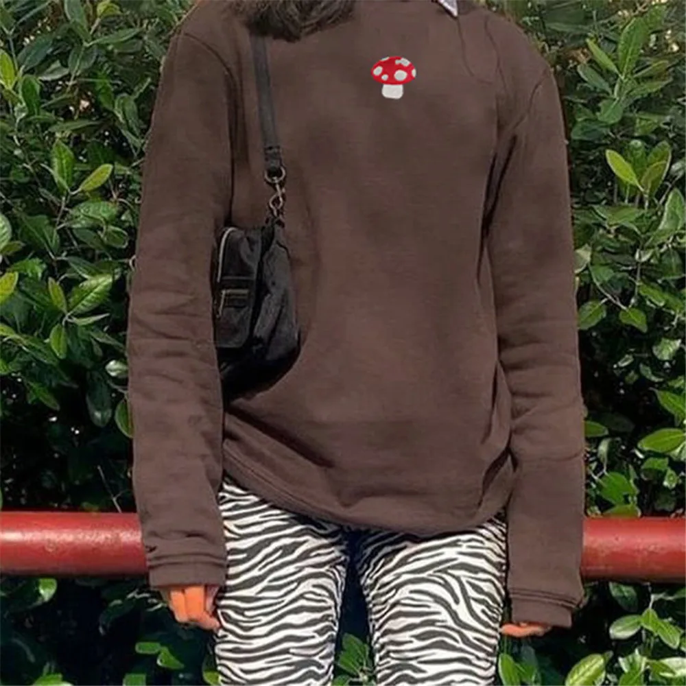 Женский свитшот с вышивкой в виде грибов Y2K, Свободный пуловер большого размера с длинным рукавом, винтажный Топ в стиле 90-х, уличная мода