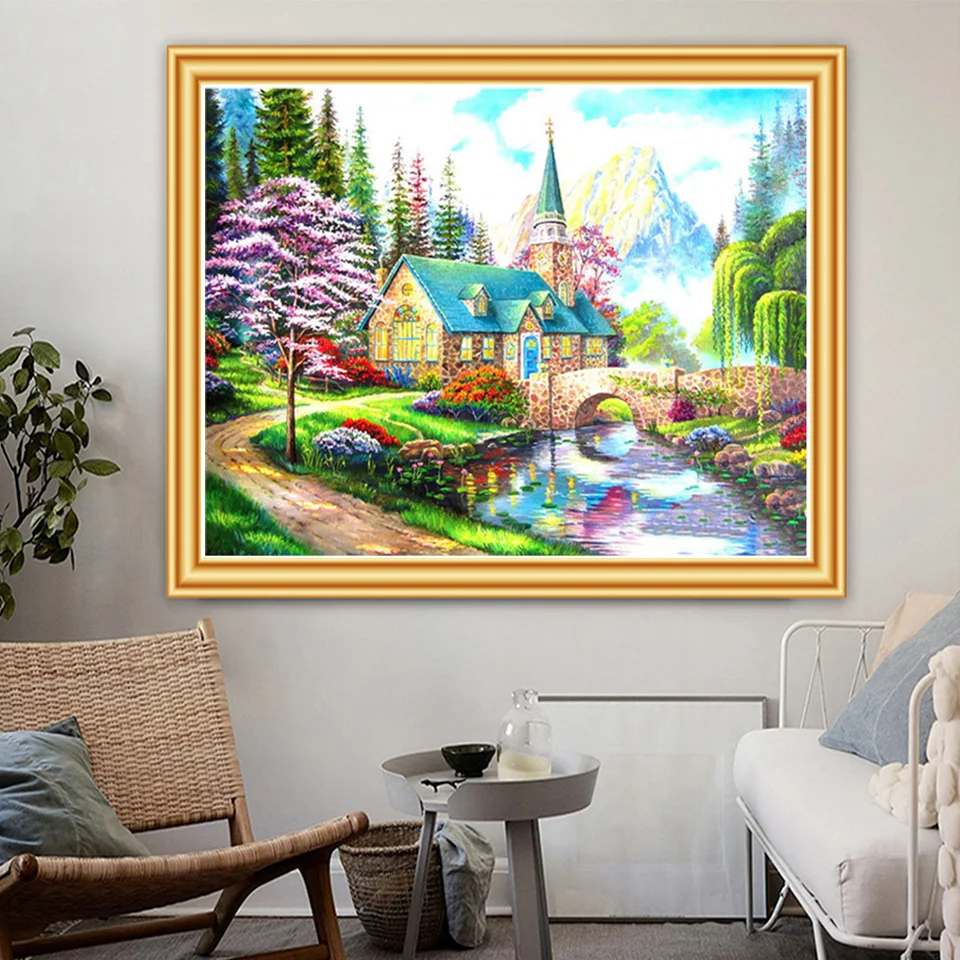 Алмазная 5D живопись сделай сам, пейзаж, церковь, мозаика, искусств...