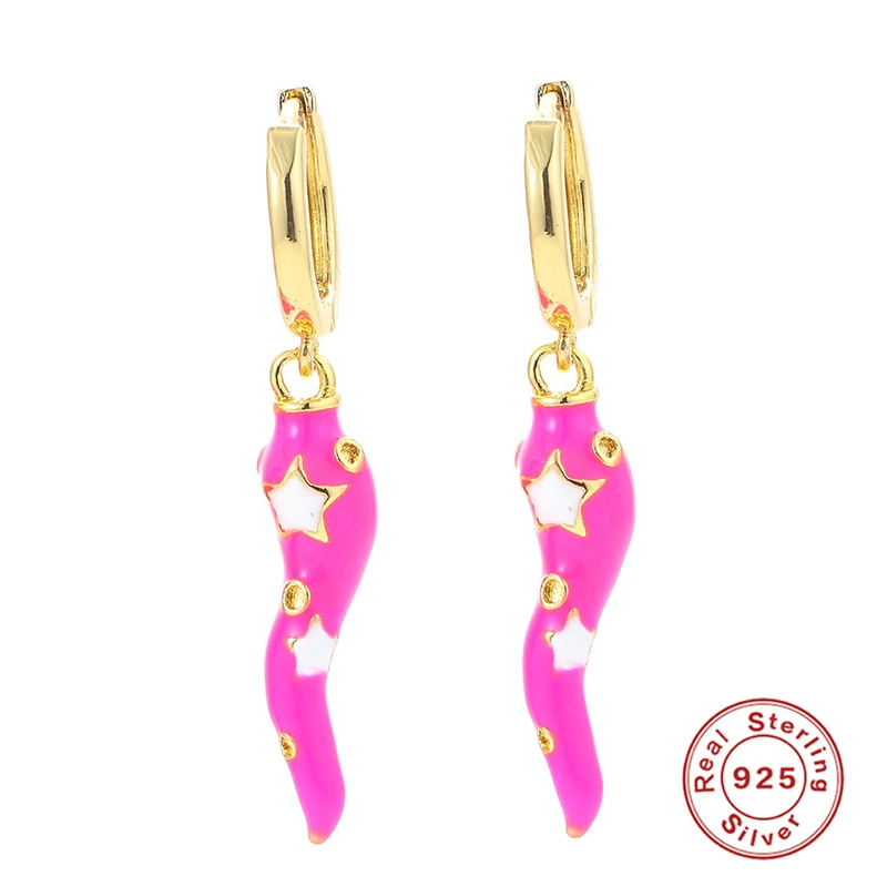 MC 925 пробы серебряные маленькие серьги в виде колец, 2021 забавные Чили серебряные серьги в виде колец, ретро капель масла звезда пирсинг серьги