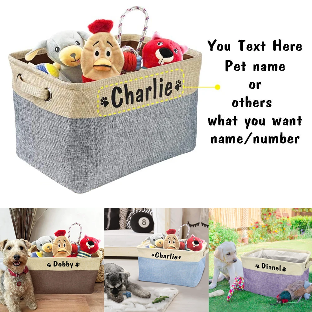 Индивидуальная коробка для хранения игрушек для собак складная корзина для хранения игрушек для кошек корзина с именем питомца Складная Холщовая Сумка принадлежности для домашних животных