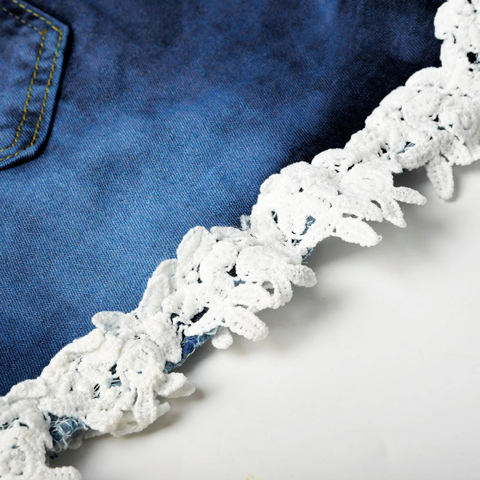 Женские тонкие эластичные кружевные джинсовые шорты на молнии