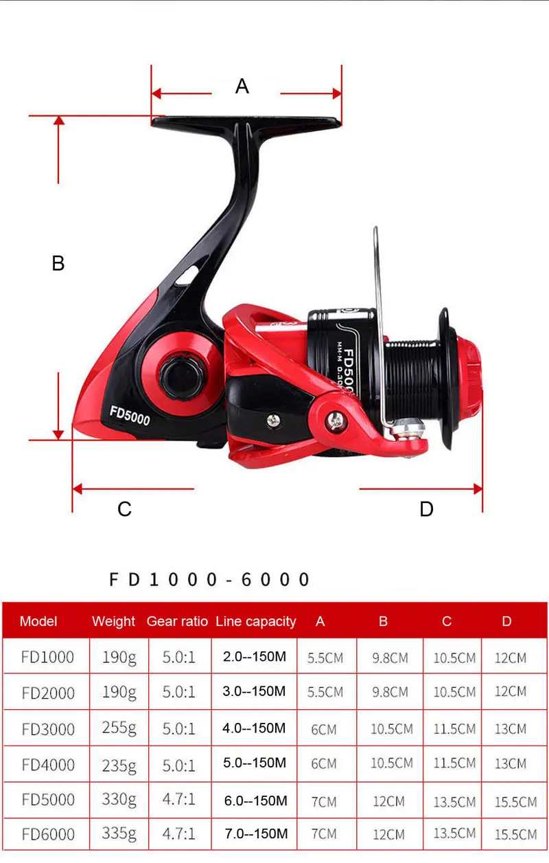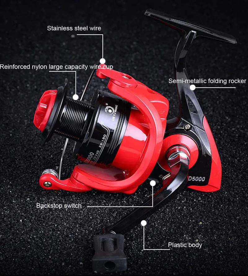Металлическая катушка, смелое направляющее кольцо, ручка из сплава, ручка из ЭВА, высокое качество корпуса.