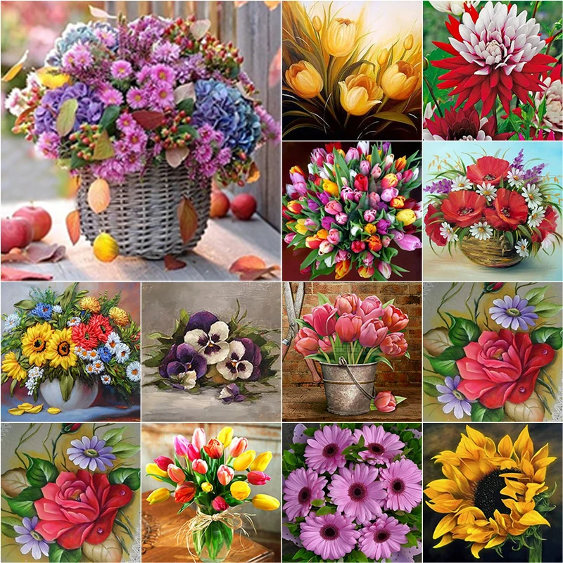 Алмазная картина 5D сделай сам, картина с цветочной корзиной, искус...