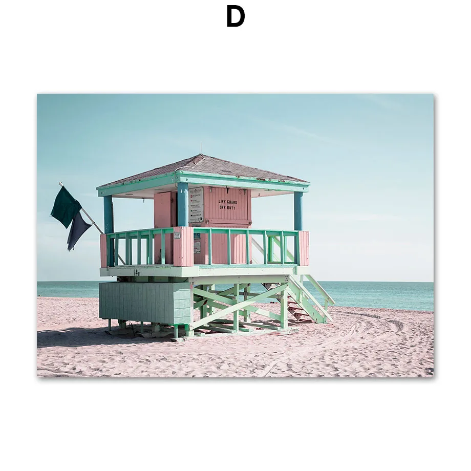 Настенная картина в скандинавском стиле, Настенная картина розового цвета с изображением пляжной хижины, воздушных шаров, для украшения дома