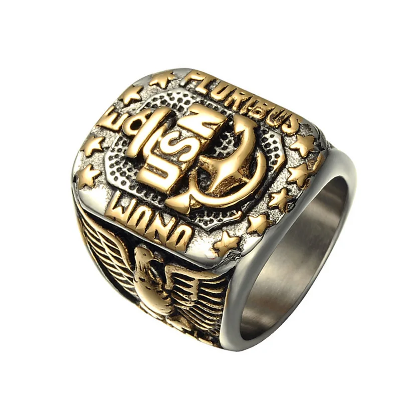 Punklboy горячая Распродажа Для Мужчин's позолоченное ожерелье в виде орла Якорь Звезда Соединенные Штаты надписи USN военно-морской флот военной армии США морской Байкер кольцо