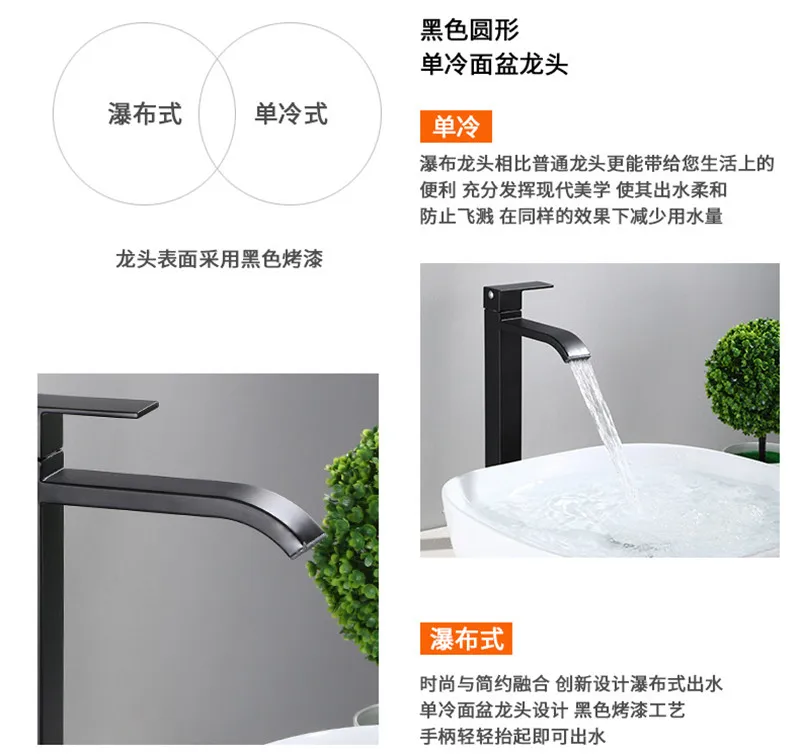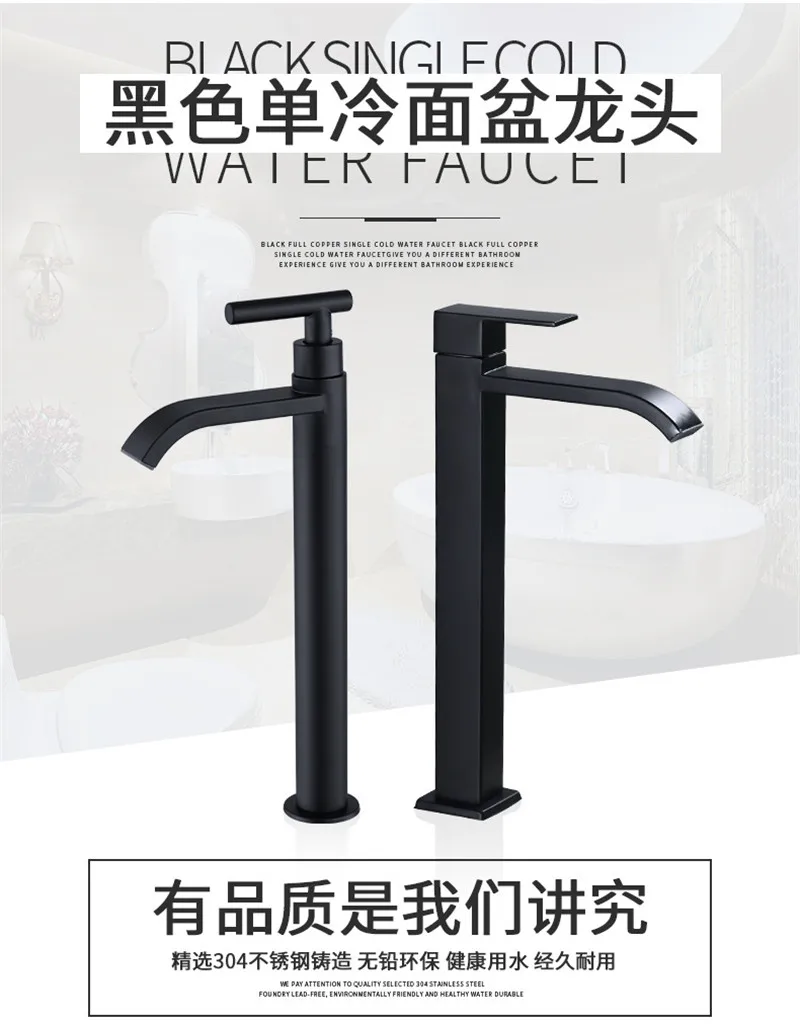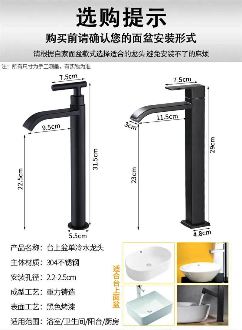 Ванная комната кран 304 Нержавеющаясталь умывальник черный Цвет одинарный кран холодной воды Ванная комната аксессуары