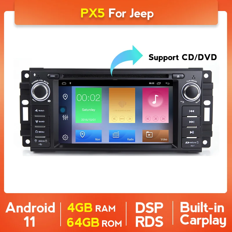Автомобильный радиоприемник 4 + 64 ГБ Android 11 DSP RDS DVD для Dodge Ram Challenger Jeep Wrangler JK GPS мультимедийный видеоплеер Авто Стерео 2DIN BT