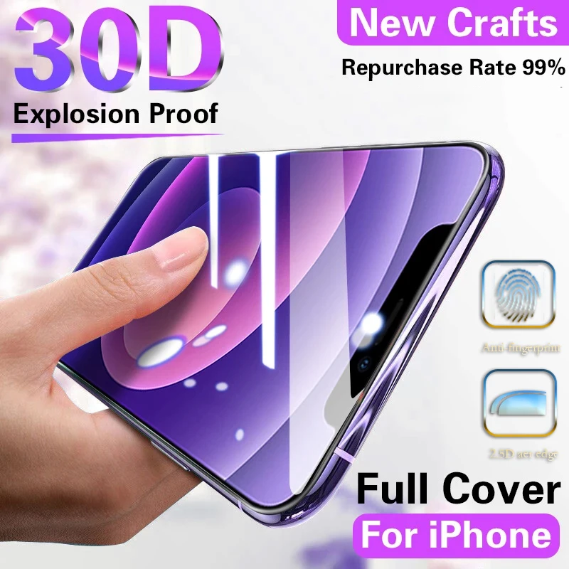 Защитное стекло 30D для iPhone 12 Pro MAX, 11 Pro, XS MAX, X, XR, 7, 6, 8 PLUS, полное покрытие