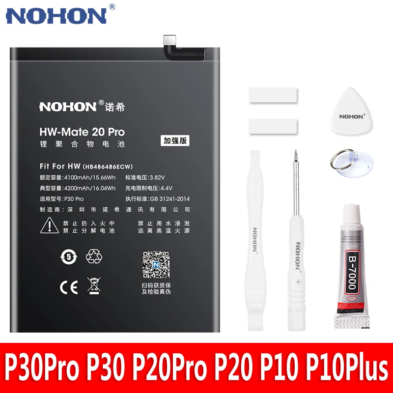 Аккумулятор NOHON литиевый для Huawei P30 P20 Pro P10 Plus HB486486ECW Mate 20 10 Pro Honor V10 V20 10i 20i 10 9