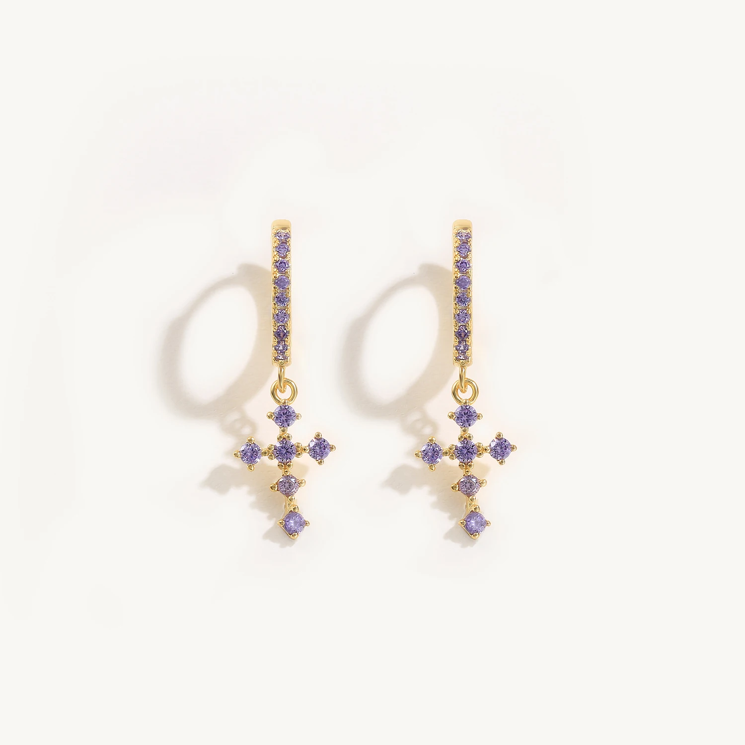 925 стерлингового серебра цвет радугифиолетовыйбелый циркон крест кулон серьги-кольца для женщин Простые круглые серьги 2021, хорошее ювелирное изделие