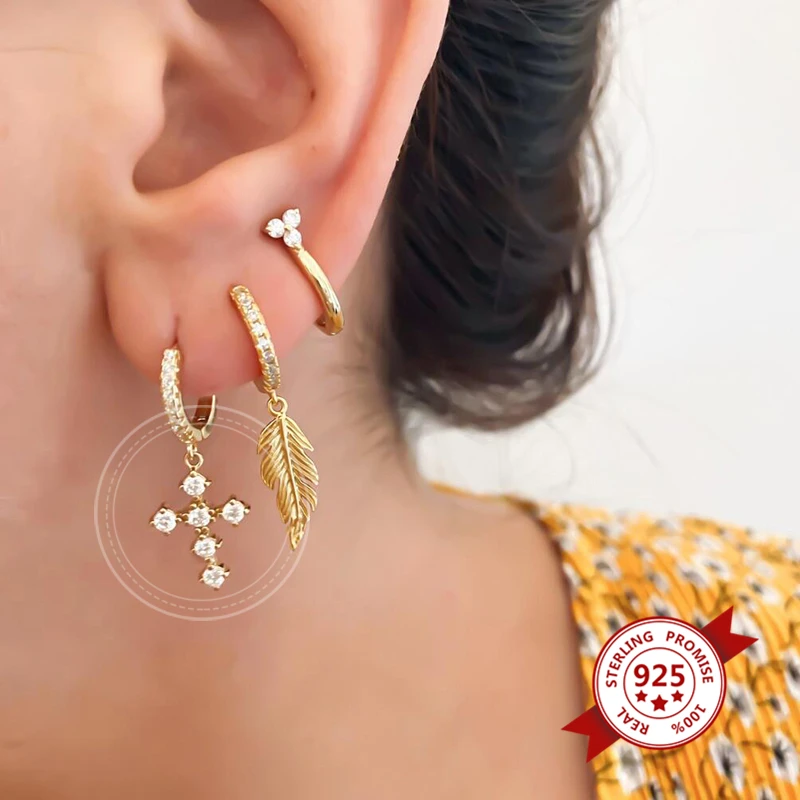 CCFJOYAS 925 стерлингового серебра серьги-кольца с крестиком женски...