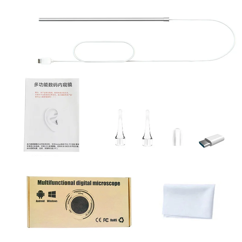 Особенности:Диаметр объектива-5,5 миллиметров, и 95% к ушному каналу может быть легко войти.Пикселей 30 Вт с 6 светодиодный свет.Улучшение технологии камеры изменило проблему нагрева линз и улучшило клиентский опыт.Оснащен металлической ушной ложкой, ее нелегко сломать и закрепить.Он обладает богатыми аксессуарами и универсальными функциями. Он может выкопать уши, проверить полость носа, проверить зубы и кожу и т. д.