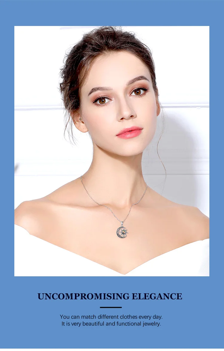 Женское ожерелье с подвеской в виде Солнца и Луны, из серебра 925 пробы