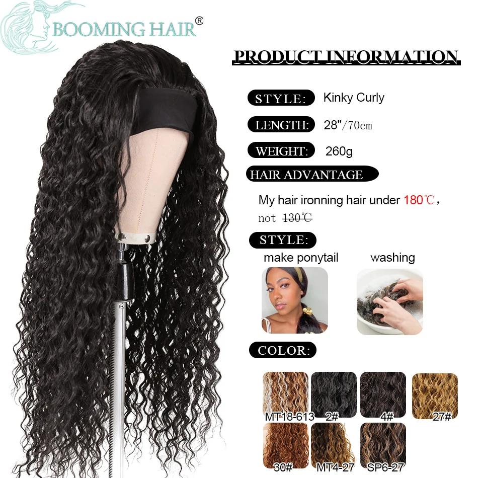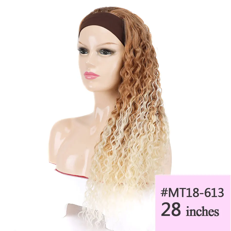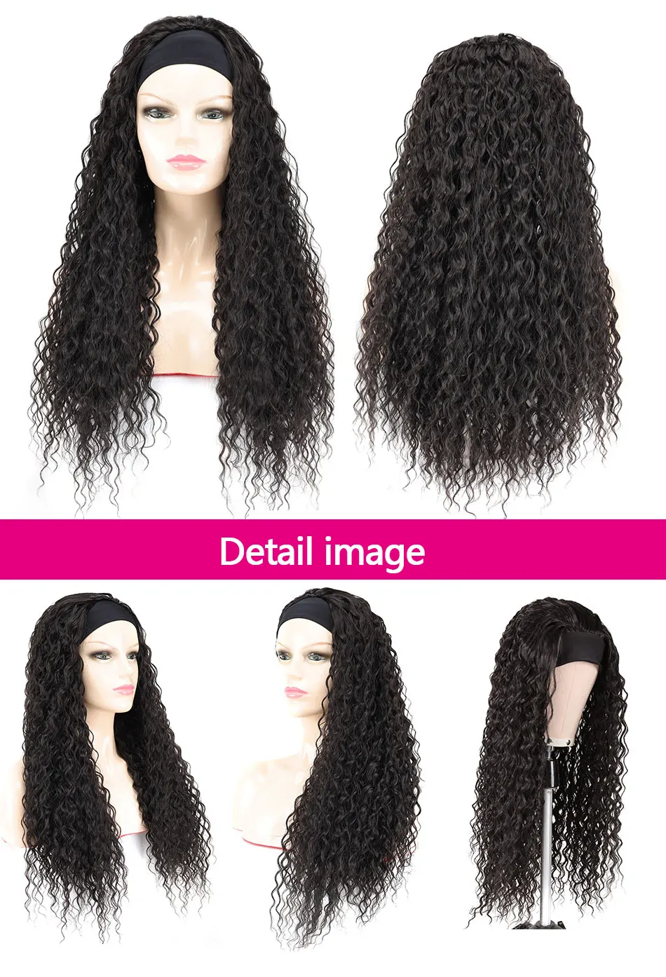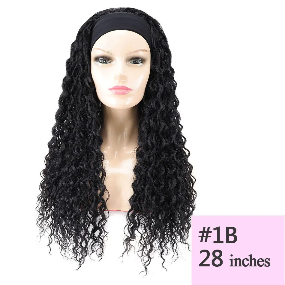 Синтетические курчавые вьющиеся парик с головной повязкой длинные волосы Anjo Plus манекен для шарфа парика 28 дюймов с повязкой на голову для чернокожих женщин для косплея без клея
