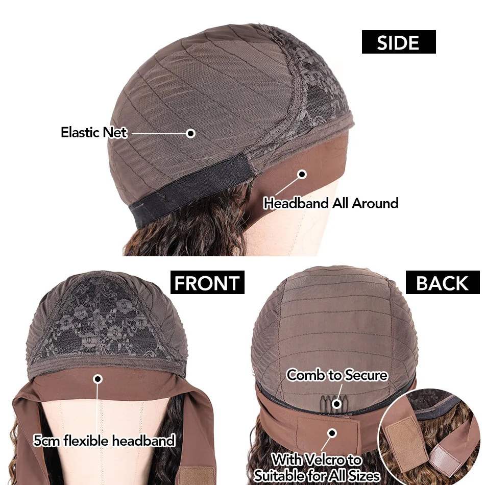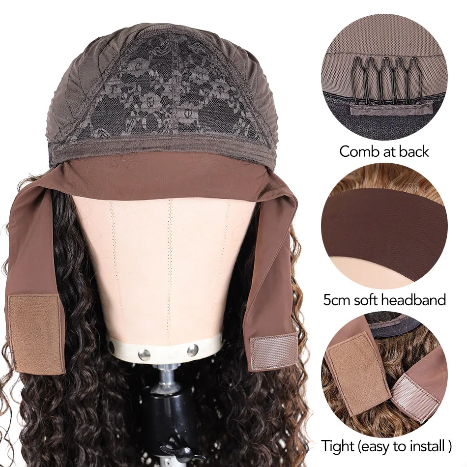 Recool глубокая волна парик с головной повязкой человеческие волосы...