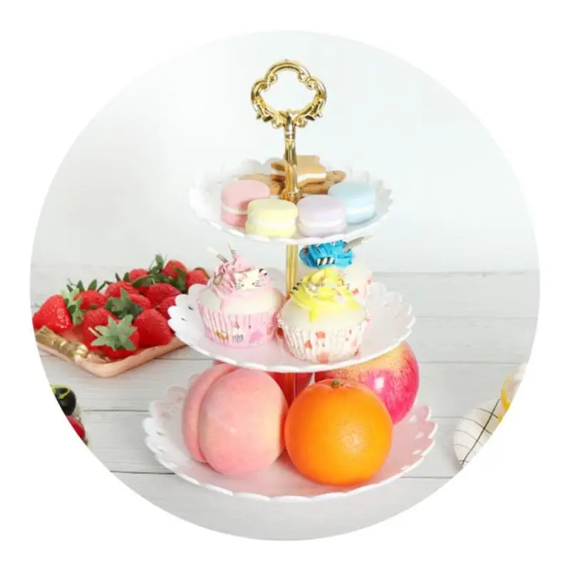 Три слоя фрукты Стенд кекса Пластик Многоуровневое вечерние сервировочный стенд для буфетного десерт башни лоток фрукты блюдо тарелки для дня рождения