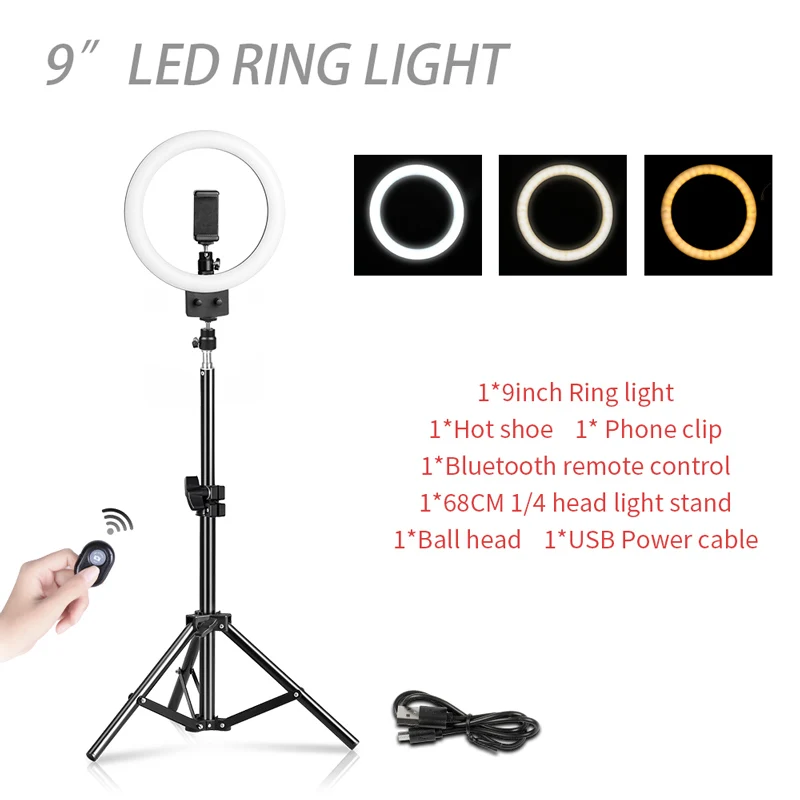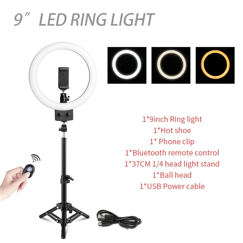 9 дюймовый Диммируемый светодиодный кольцевой светильник селфи макияж кольцо для фотосъемки с лампами светильник ing с штатив с держателем для телефона и usb-разъем для студийной фотосъемки