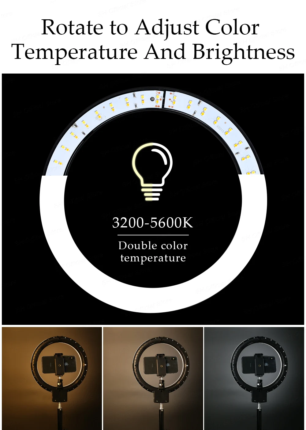 Светильник источник света: светодиодный SMDСветодиодный светильник: 80 шт.Форма: КольцоВнешний диаметр: 23 см/9''Внутренний диаметр: 18 см/7''Мощность: 10 Вт Напряжение: 5 ВЦветовая температура: 3200-5600K (бесступенчатая цветовая температура)Регулировка яркости: ДаДиапазон затемнения: 1%-100% (плавное Затемнение) общая освещенность: 600 лмCRI (индекс цветопередачи): >83Адаптер: универсальный штекерТип: USB разъемВходное напряжение: широкийНапряжение (110-260 В)Кольцевой светильник Диаметр: 9 ''/23 смPecifications: 3 цвета регулируемые (плавное Затемнение)Интерфейс: 1/4 универсальное винтовое отверстиеДлина шнура питания USB: 250 см/8,2 футаМатериал: алюминиевый сплав + ПК