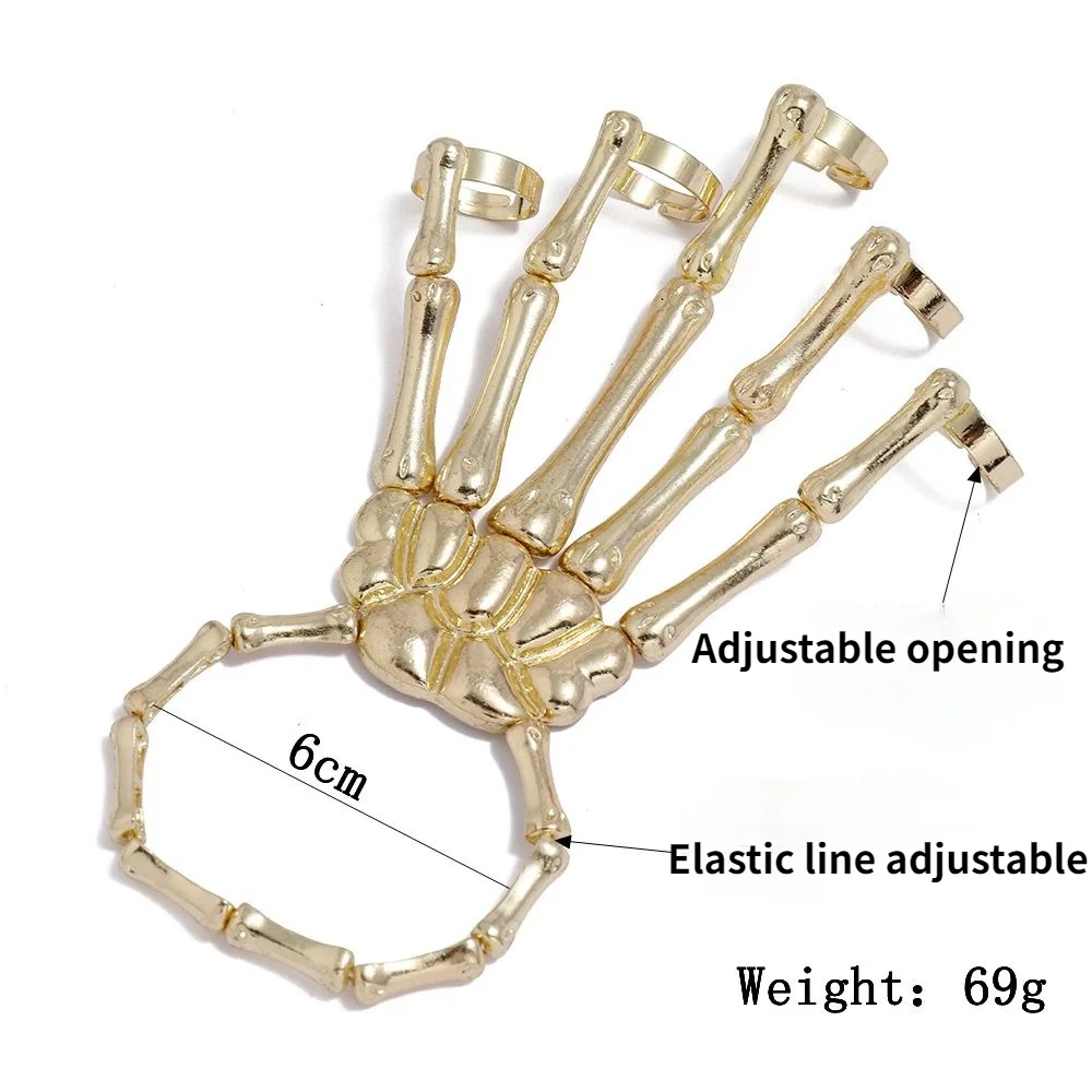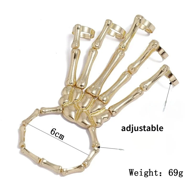 2021, летние ювелирные изделия, панк, Череп, сплав, ручная кость, пять пальцев, кольцо, браслет, регулируемые соединительные браслеты, аксессуары для Женская повязка, оптовая продажаКольцо браслет для женщин череп аксессуары для рук панк кольца Браслет Кость ювелирные изделия