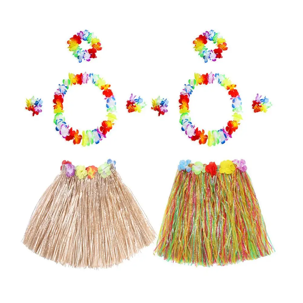 Новинка 2021, костюм в гавайском стиле, юбка с цветочным принтом и гирлянда, юбка-Хула, костюм для танцев и вечеринок, женское платье, принадлежности для Гавайской вечеринки