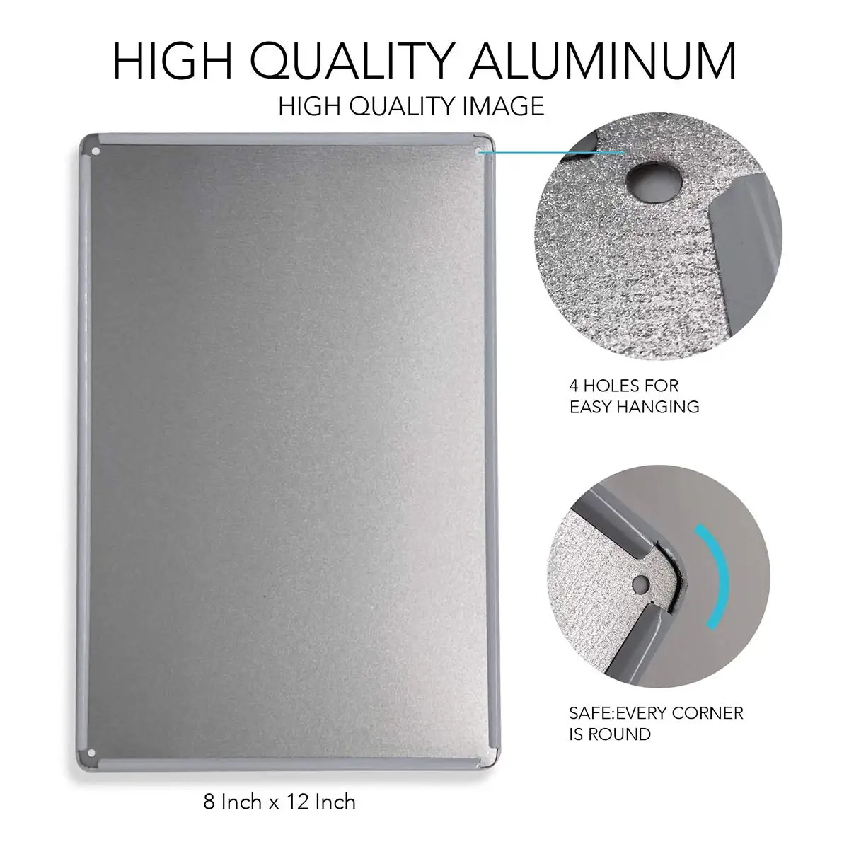 Сделано полностью в США из прочного и прочного американского алюминия, этот 7-дюймовый 10-дюймовый (7 "x 10") металлический знак дает эффект старения с имитацией ржавых краев и поцарапанной и выцветшей краски. Он имеет гладкие закругленные углы и включает предварительно просверленные монтажные отверстия. Подходит для использования в помещении или на открытом воздухе, этот знак устойчив к атмосферным воздействиям и не выцветает на солнце в течение многих лет. Наши индивидуальные знаки ручной работы идеально подходят для кухонь, ванных комнат, дверей, гаражей, мужских пещер, стен Кабин-любое место, которое вы хотели бы меньше, очень уникальные знаки. Примечание: хотя на этих знаках могут быть подняты буквы, текстурированная ржавчина или тиснение, они на самом деле идеально плоские. Это изображения, которые выпекаются на металлическом знаке. Текстурирование или тиснение могут выглядеть реальными, но эти знаки полностью плоские и не текстурированные.