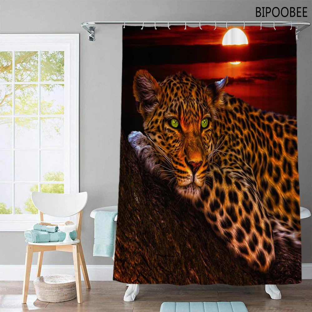 Занавеска для душа с леопардовым принтом, водонепроницаемая Полиэстеровая s-образная крышка для туалета, нескользящий ковер, домашний декор, сумерки и Луны