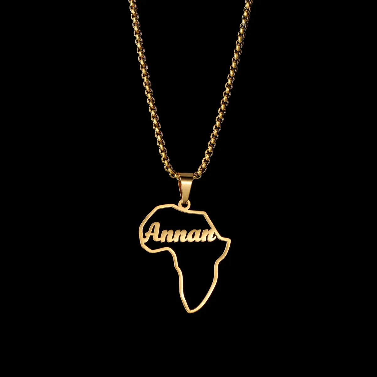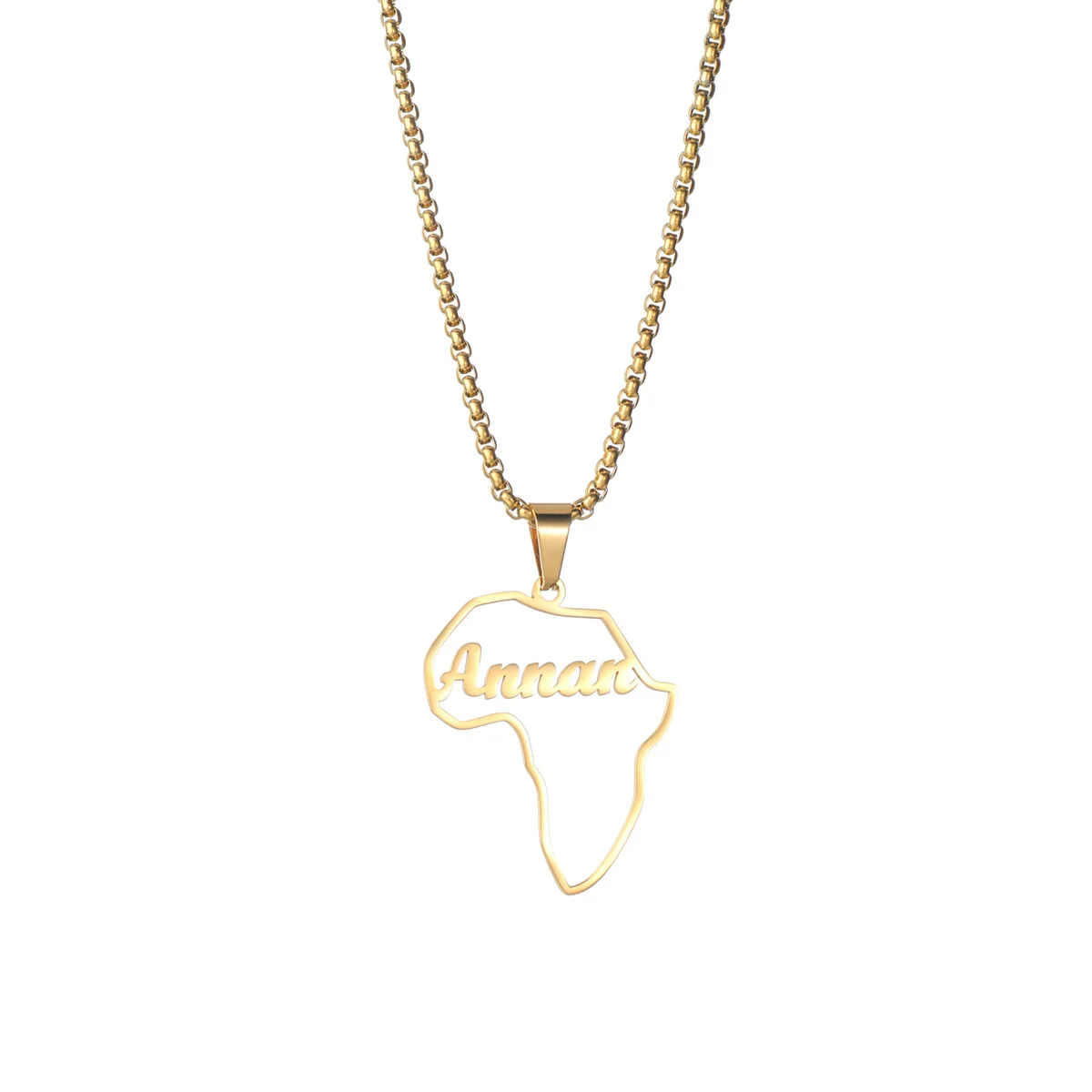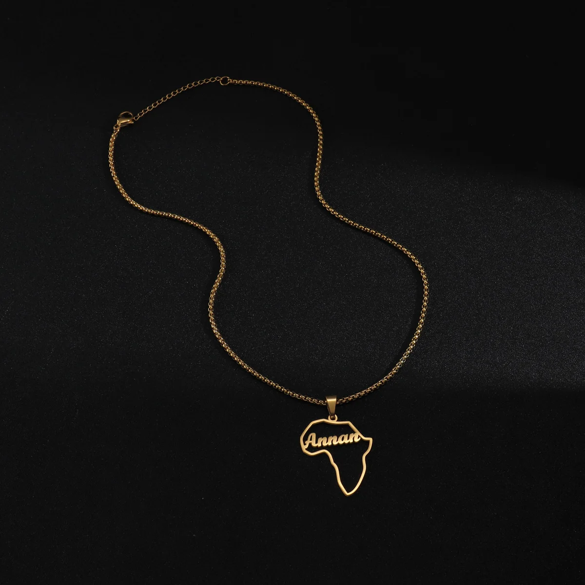 Goxijite персонализированные полые Карта Африки ожерелье для женщин из нержавеющей стали, пользовательские кулон-табличка с именем креативный подарок