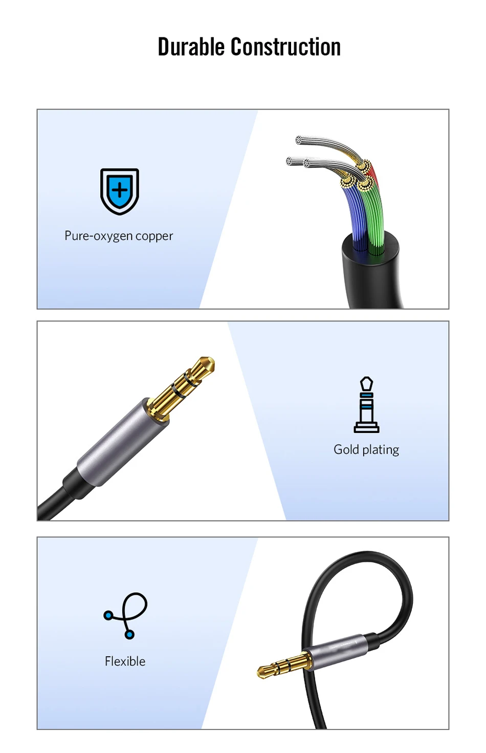 Feature 5Gold Plug Multi Pole Aux Speaker Wire
