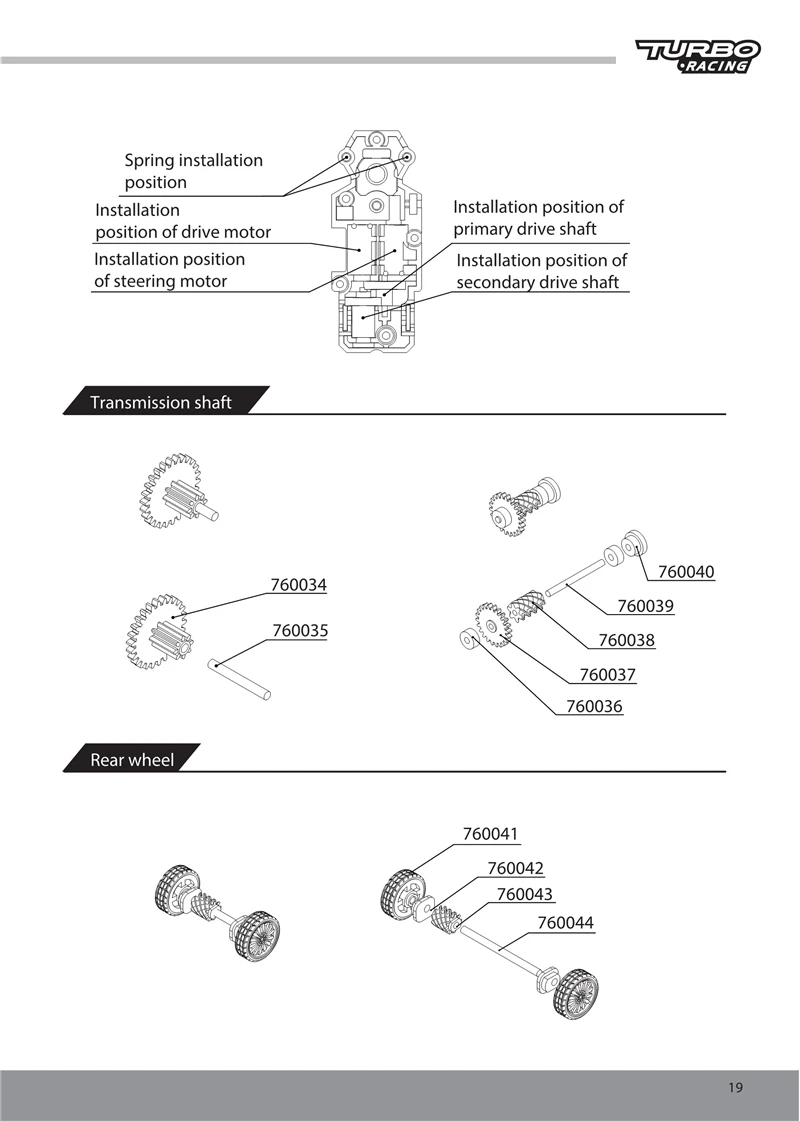 760036 Turbo Racing 1:76 C71 запасные части для радиоуправляемых автомобилей, втулка оси (вторичный приводной вал), 4 шт. в упаковке