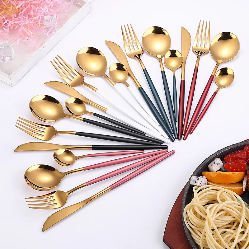 Набор золотых столовых приборов из нержавеющей стали, 24 шт.