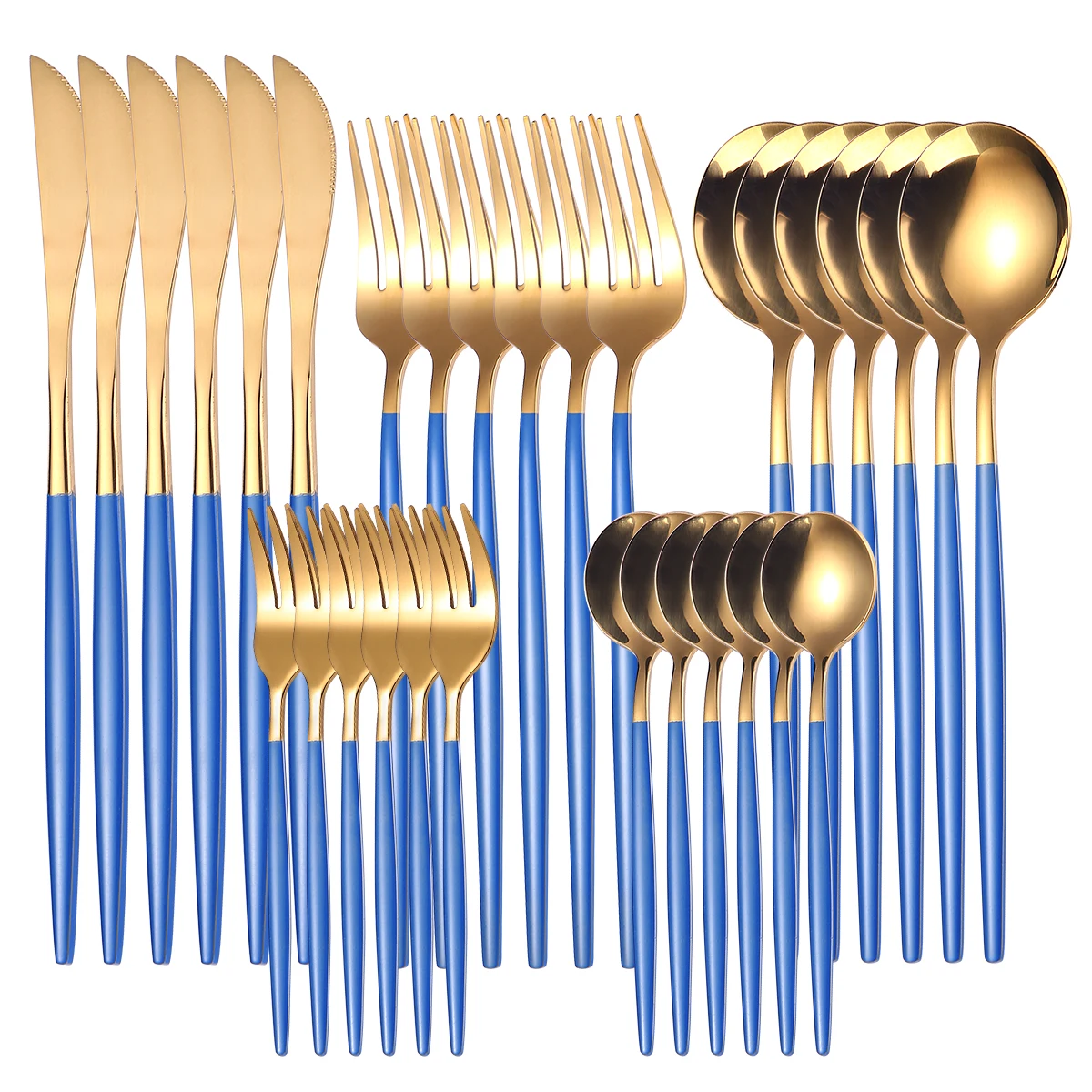 Набор золотых столовых приборов из нержавеющей стали, 30 шт.