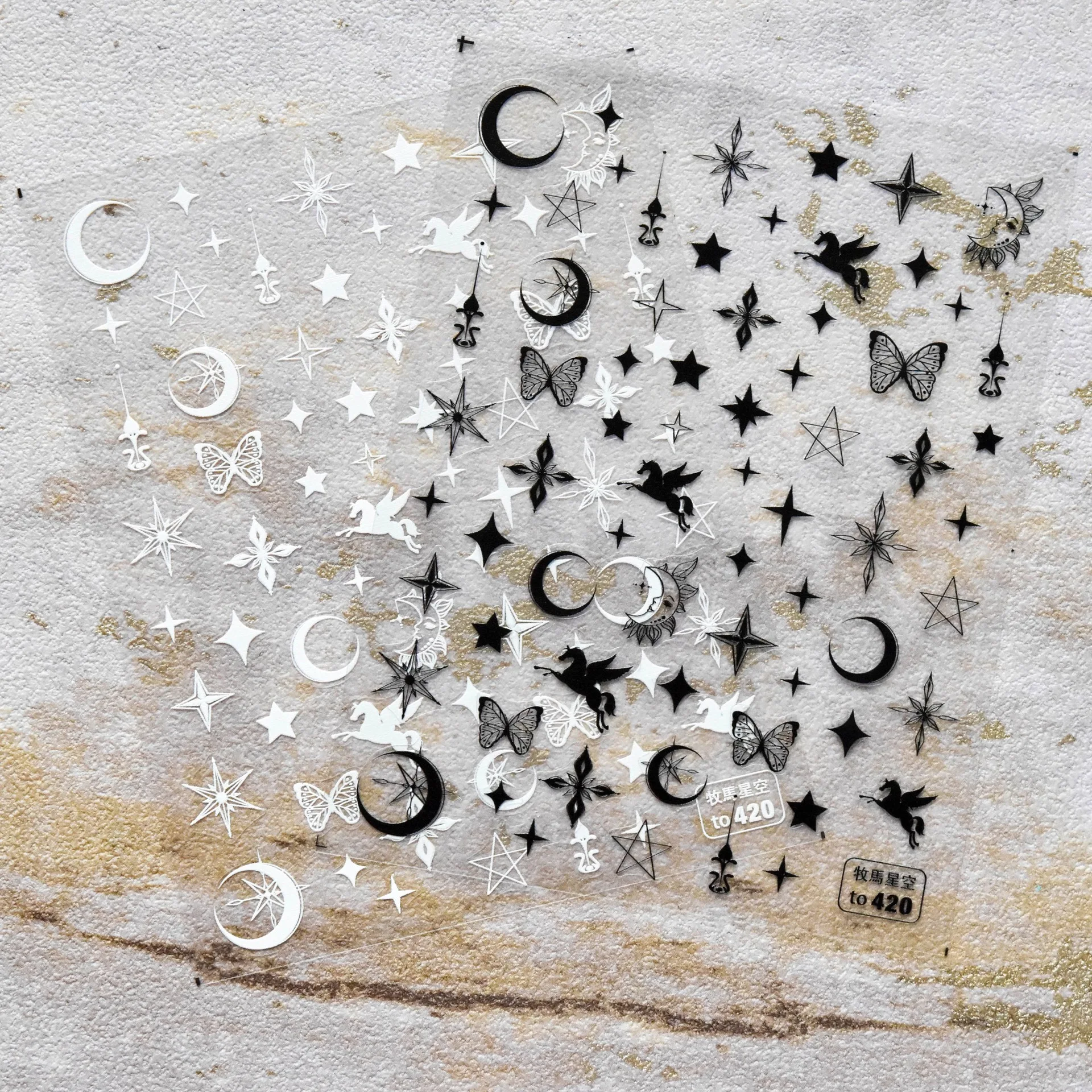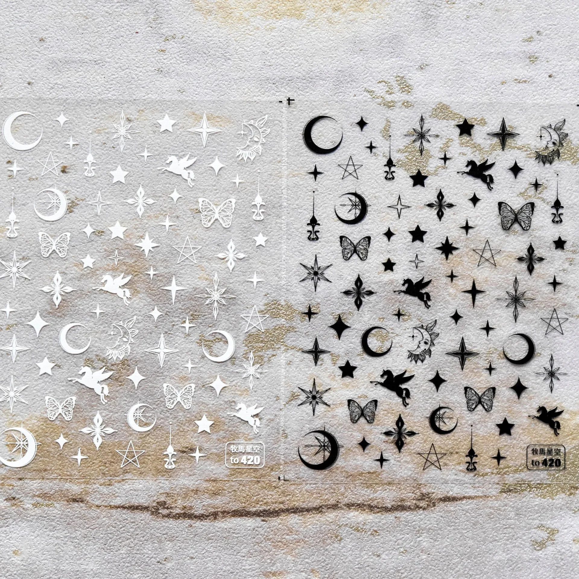 Новые крафтовые наклейки для ногтей в виде бабочки и Луны s Pegasus звездное небо декоративные материалы для ногтевого дизайна ультратонкие аксессуары для ногтей в виде единорога