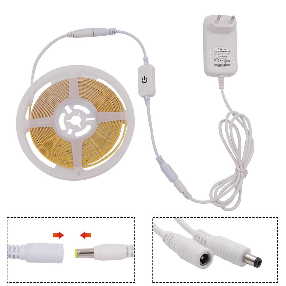 Примечание:1. Минимальный диаметр изгиба светодиодный ленты составляет 60 мм. Это позволяет избежать прямого или непрямого повреждения компонентов на FPC и FPC, что приводит к аномалии в светодиодный полосе.2. Двусторонняя клейкая лента для Светодиодный полоски, с своей превосходной клей и устойчивость к атмосферным воздействиям, может быть прикреплен к любому прозрачное стекло, металл и пластик поверхности, но некоторые поверхности, как, например, ткань и дерево, может повлиять на их функции и долговечность. Перед установкой проверьте адгезию на светильник.3. Этот продукт требует защиты от коррозии. Например, Избегайте попадания влаги, капель или других неблагоприятных факторов.4. Если Светодиодная лента подключена более 5 метров, может быть падение напряжения, что приводит к тому, что светильник будет непоследовательным. Пожалуйста, добавьте напряжение каждые 5 метров.5. Это нормально, если вы не согласны с этим, пожалуйста, не делайте заказ.Спецификация:-Товар: светодиодный светильник COB-Напряжение: DC12V-Количество светодиодный: 320 светодиодный s/M, 384 светодиодный s/M, 528 светодиодный s/M-Светильник: белый, теплый белый, натуральный белый, синий, зеленый, красный-Ширина FPCB: 320 светодиодов/m-8mm, 384 светодиодов/m-8mm, 528 светодиодов/m-10mm-Длина резки: 320 светодиодов/м-каждые 50 мм, 384 светодиодов/м-каждые 42 мм, 528 светодиодов/м-каждые 45 мм-Цвет излучения: теплый белый (3000-3200K), натуральный белый (4000-4500K), белый (6000-6500K)-Индекс цветопередачи: Ra>90-Рабочая температура: -20 ℃-+ 45 ℃-Температура хранения: -20 ℃-+ 60 ℃-Угол обзора: 180 °Посылка включает в себя:1 х Светодиодная лента COB1 х сенсорный диммер1 х разъем питания
