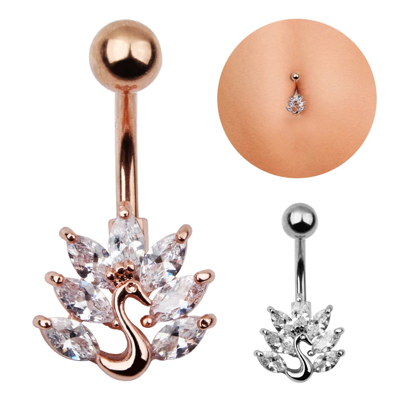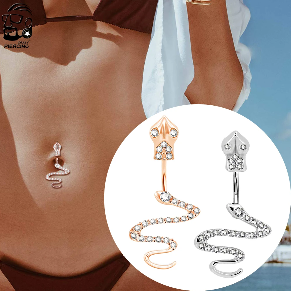 Кольцо для пирсинга животного на пупок, ювелирное изделие из стали с фианитом в виде Ловца снов, кролика, змеи, 14g, 1 шт.