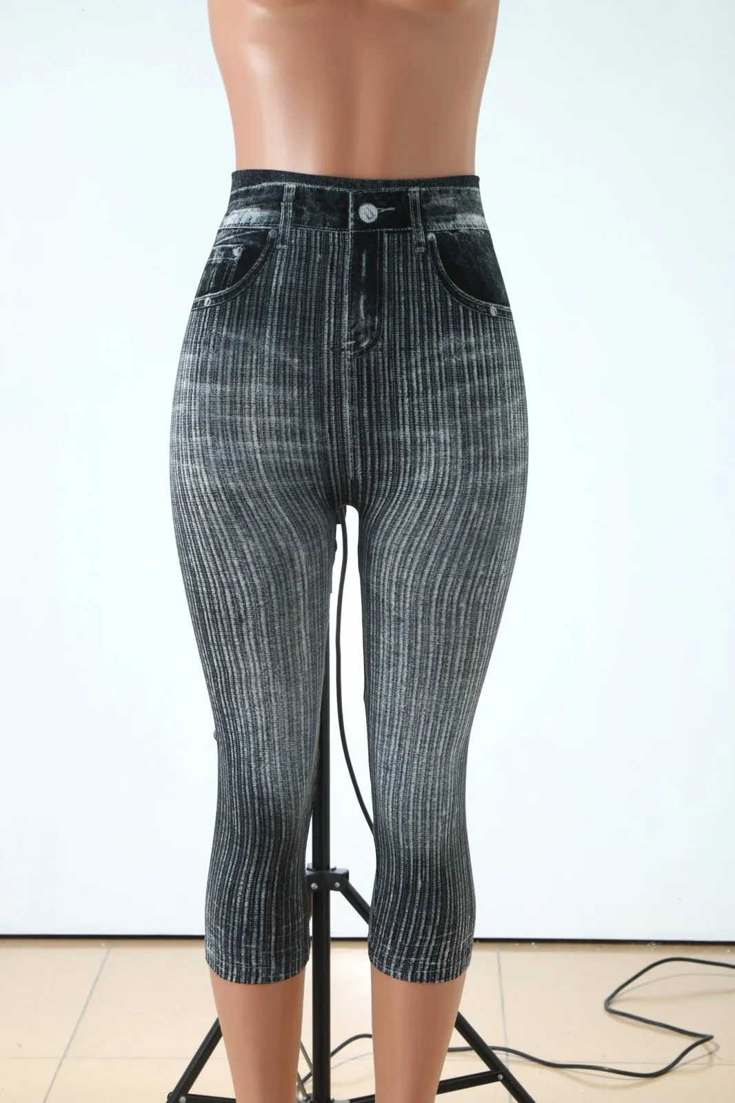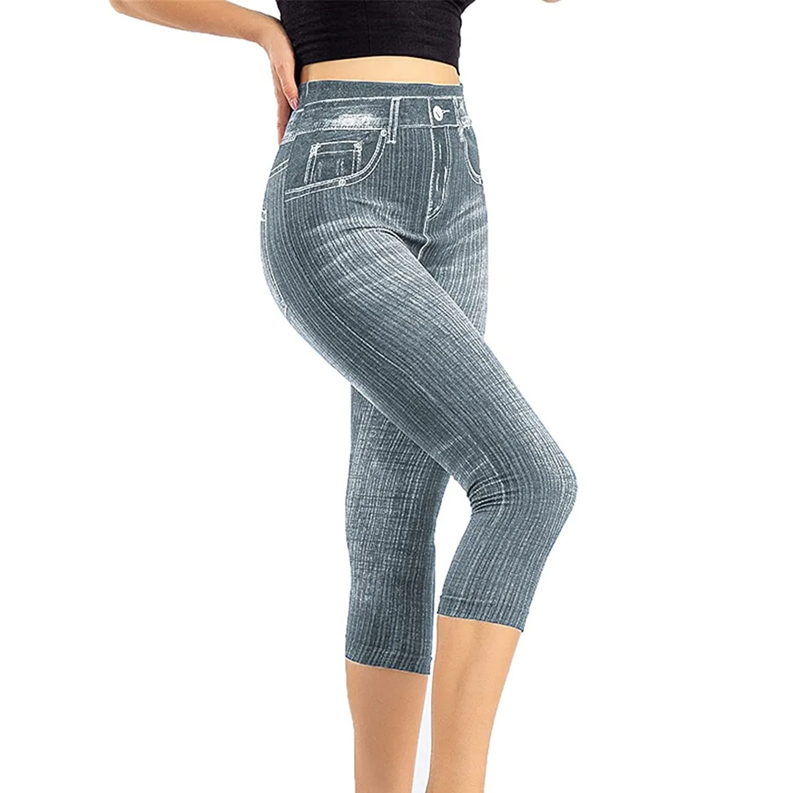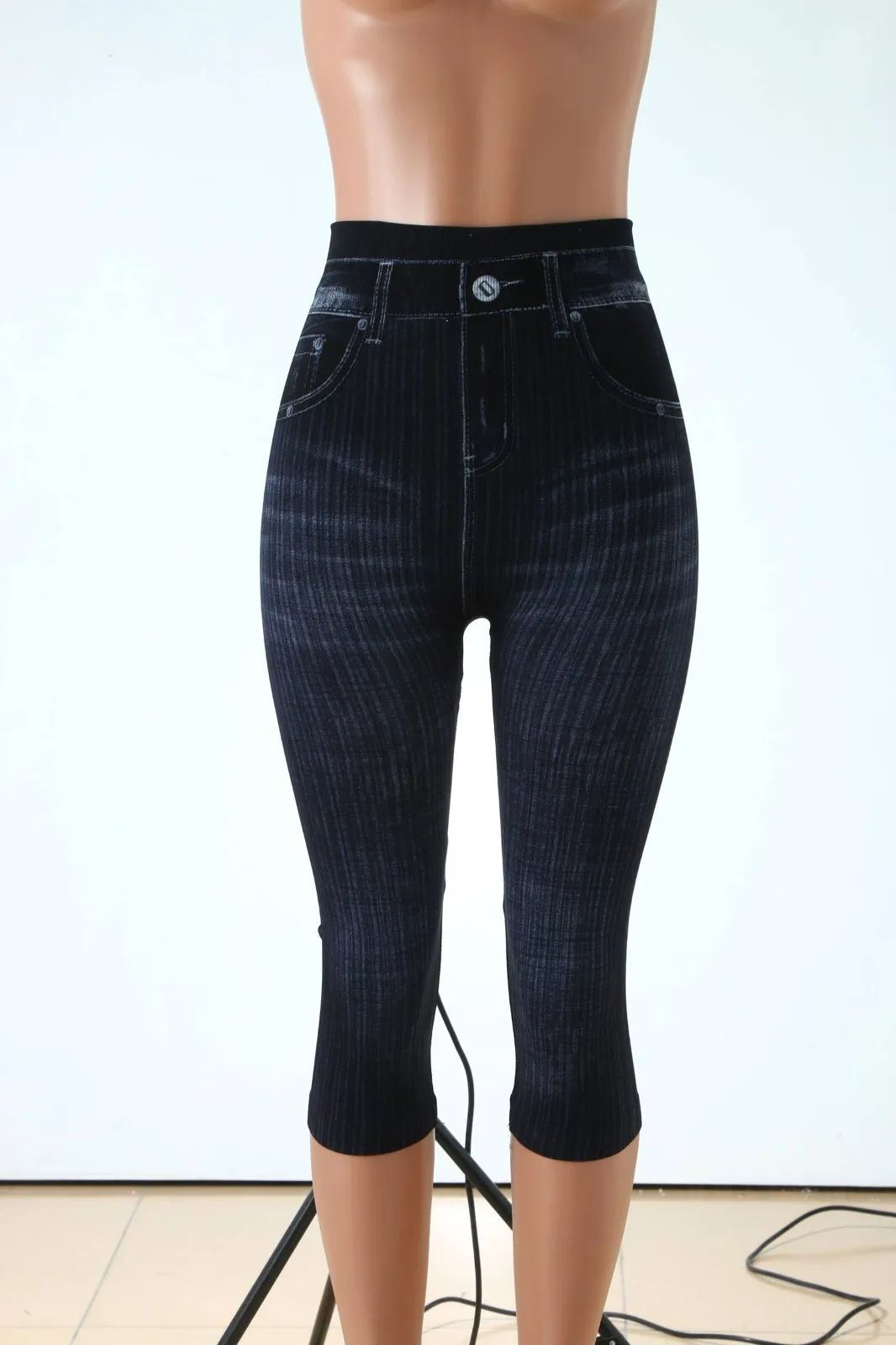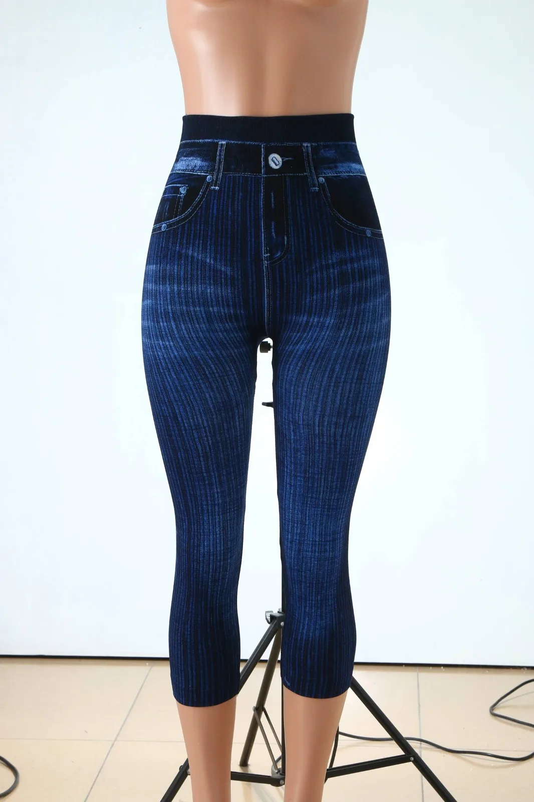 Женские Капри, имитация джинсов, леггинсы с высокой талией, эластичные леггинсы