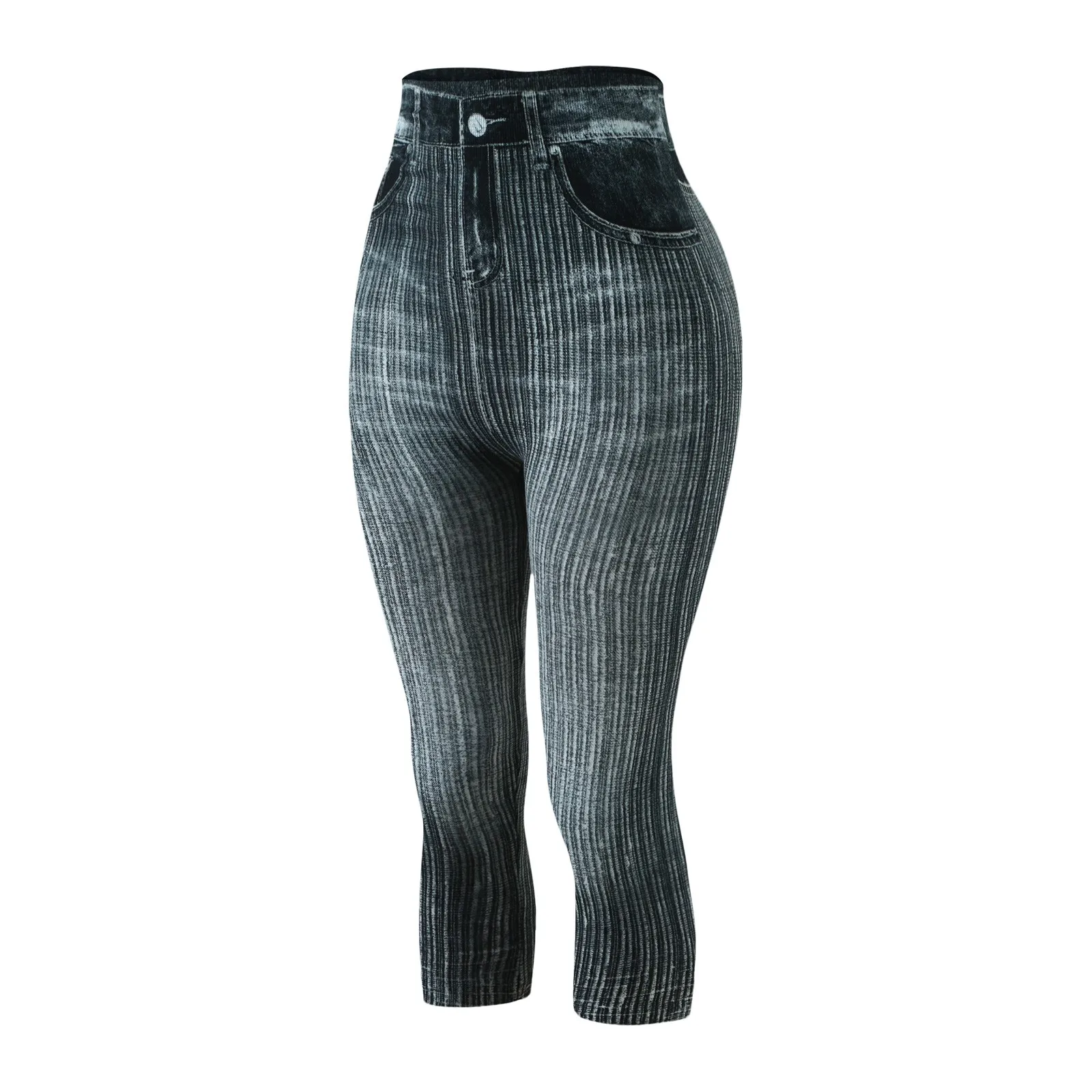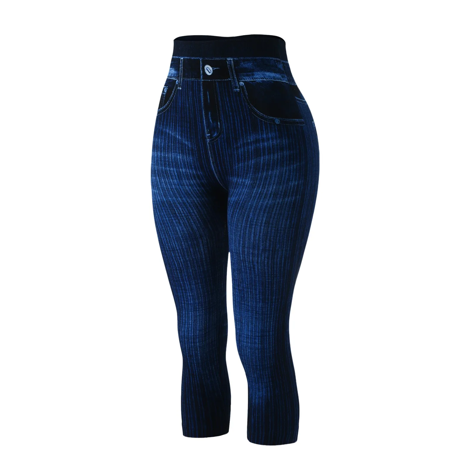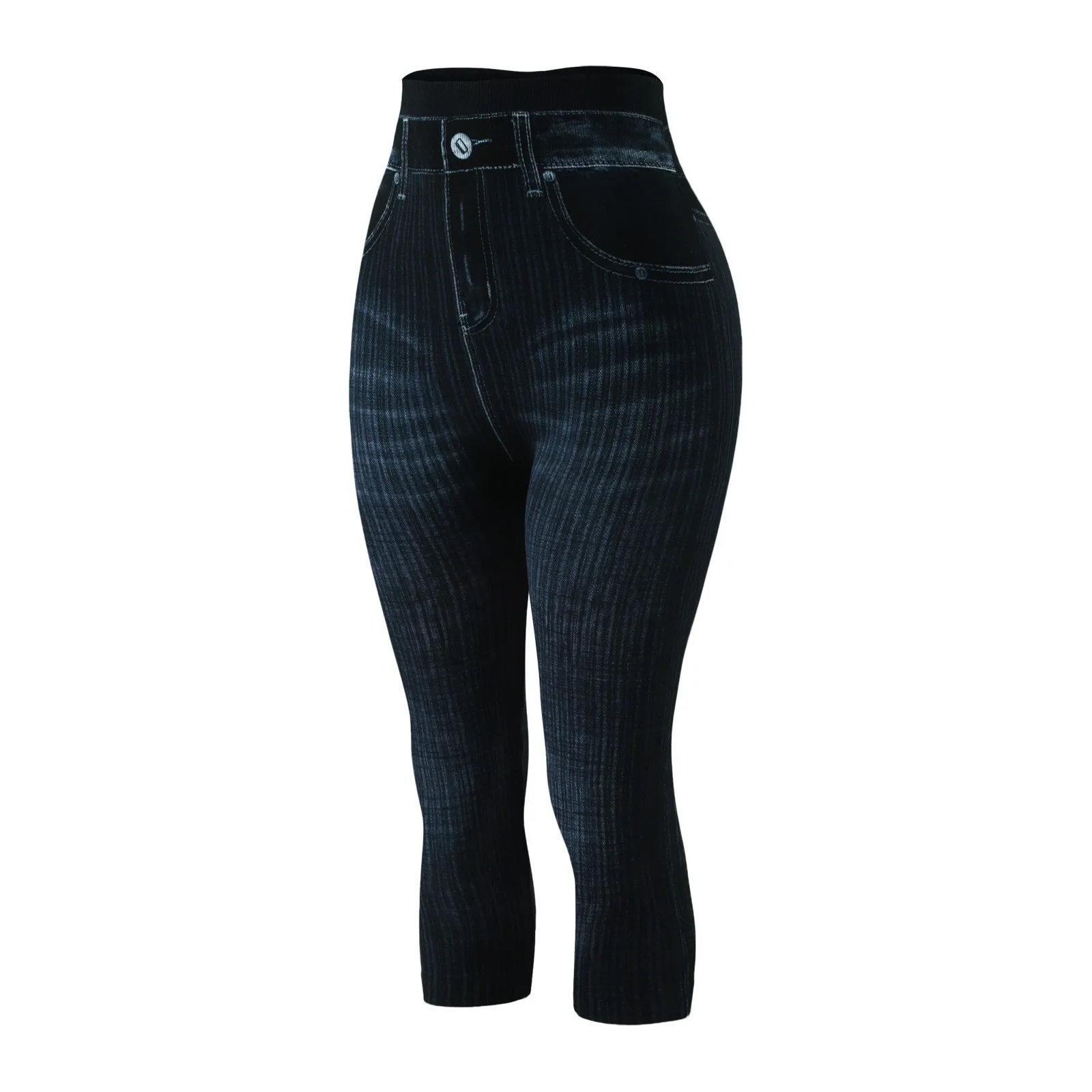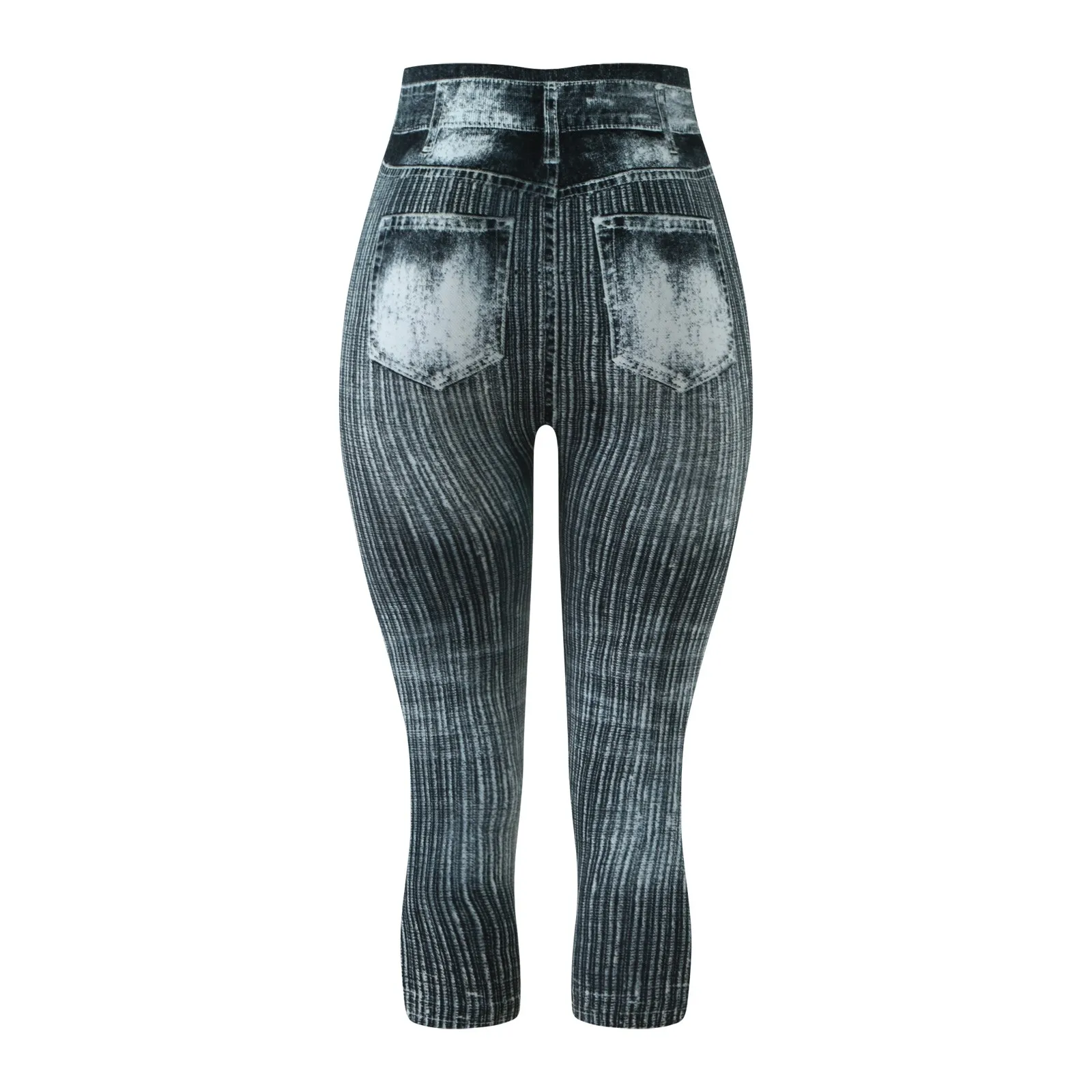 Женские Капри, имитация джинсов, леггинсы с высокой талией, эластичные леггинсы