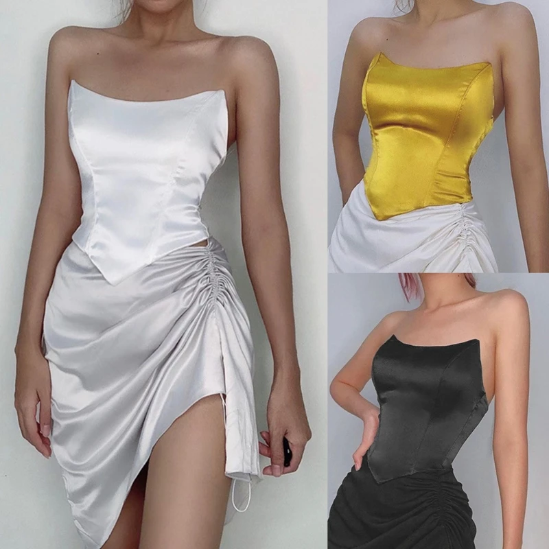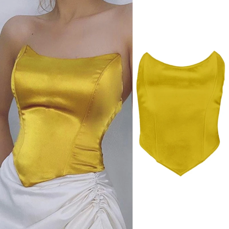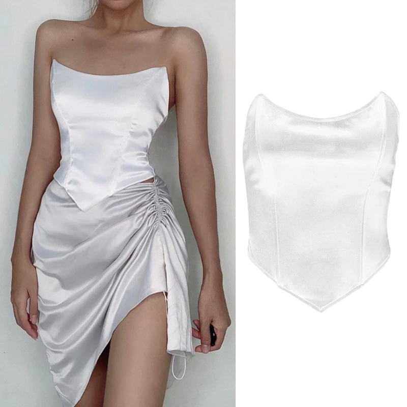 Женский атласный корсет без рукавов, с открытыми плечами и косточками