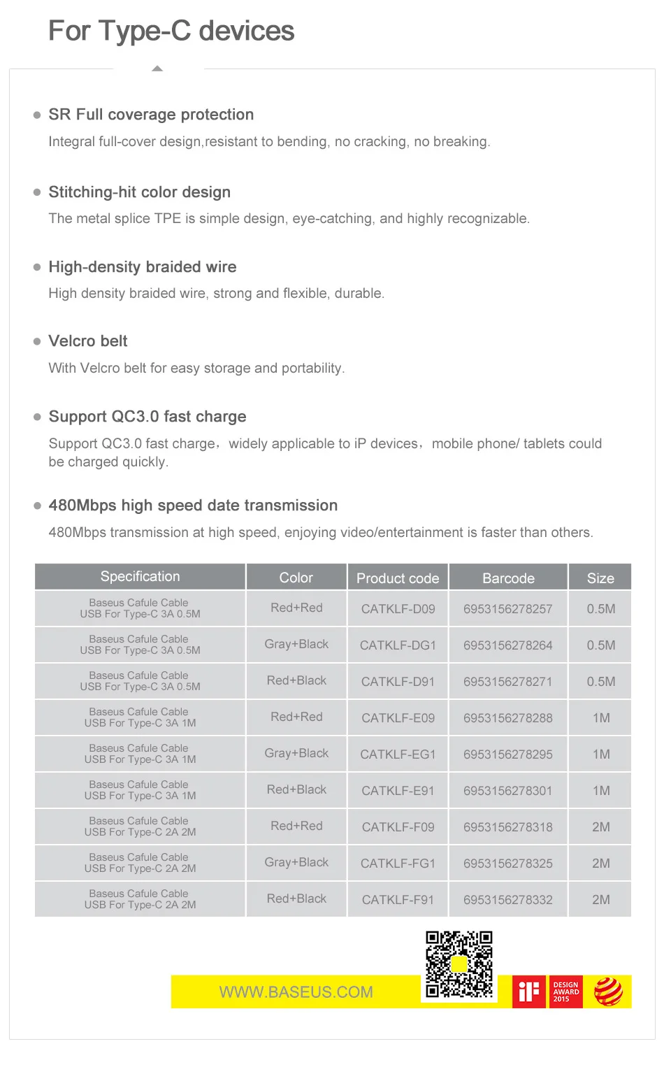 Feature 1USB Cable, Mobile Phone Cables, Cable Winder USB C, USB Type C