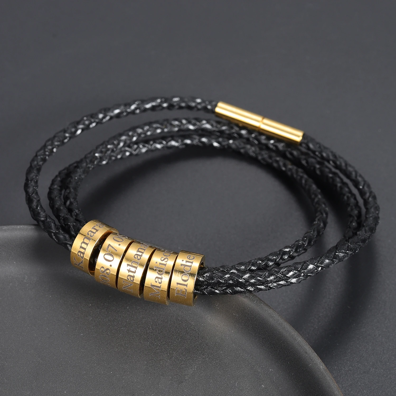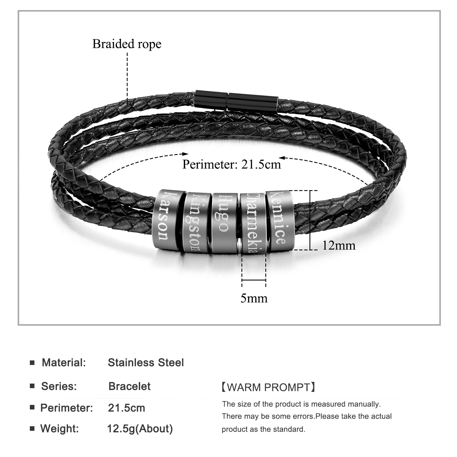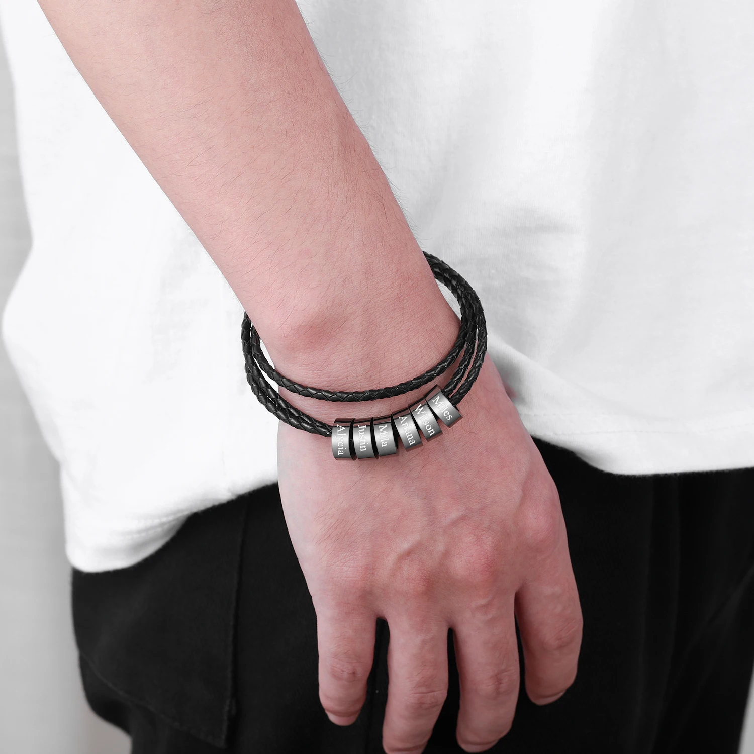 Персонализированный мужской плетеный кожаный браслет, подарок на день отца, Подарок на годовщину, для парня, мужа, индивидуальный шарм с бусинами для мужчин