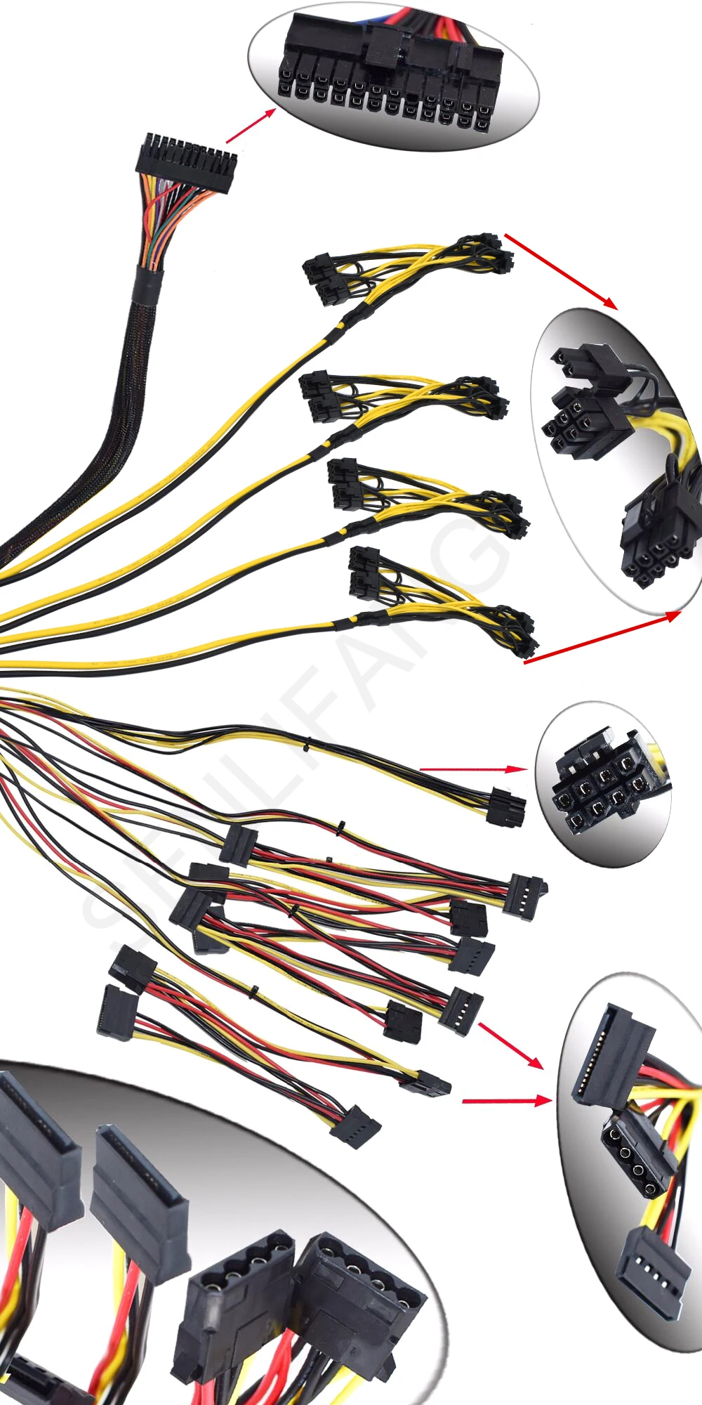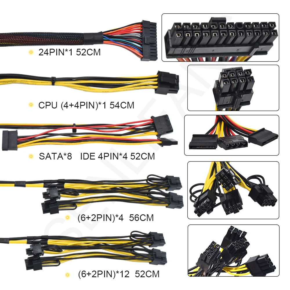 Блок питания SENLIFANG для майнинга ATX мощностью 2400 Вт, Толстая линия 12AWG, может подключаться к 8 ГП, автоматически управляемому вентилятору для блока питания для майнинга биткоинов ETH
