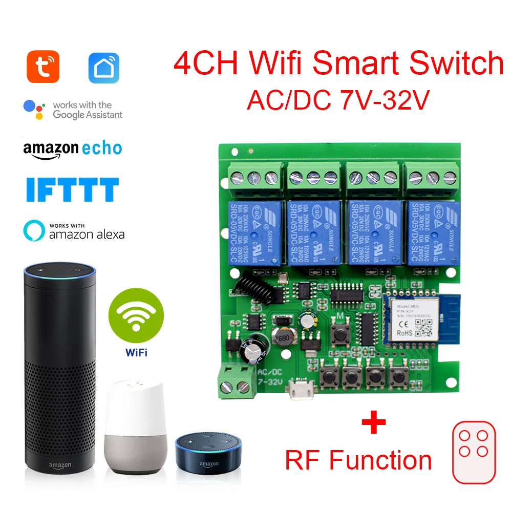 Умный светильник ключатель света Wi-Fi, модуль Wi-Fi, беспроводной модуль дистанционной автоматизации дома 10A таймер выключателя, работает с Alexa Google Hom