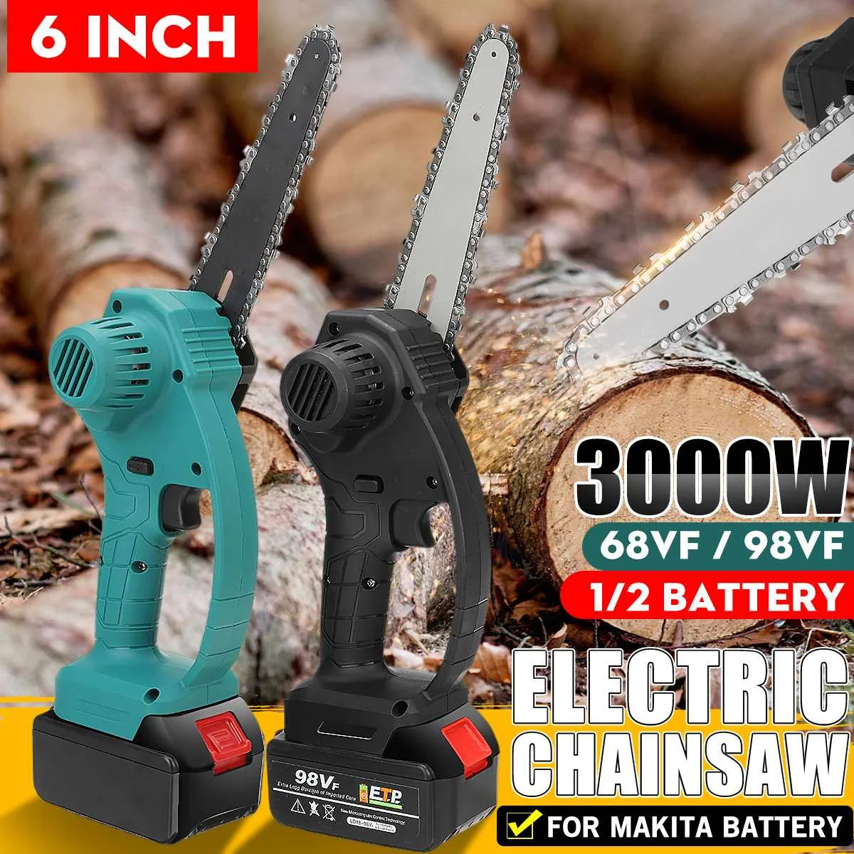 Электрическая цепная пила, 3000 Вт, 6 дюймов, миниатюрная Электрическая цепная пила, Беспроводная электрическая пила для обрезки, портативная электрическая пила 68 в98 в, европейская вилка