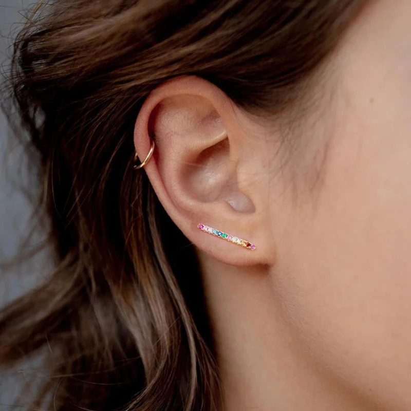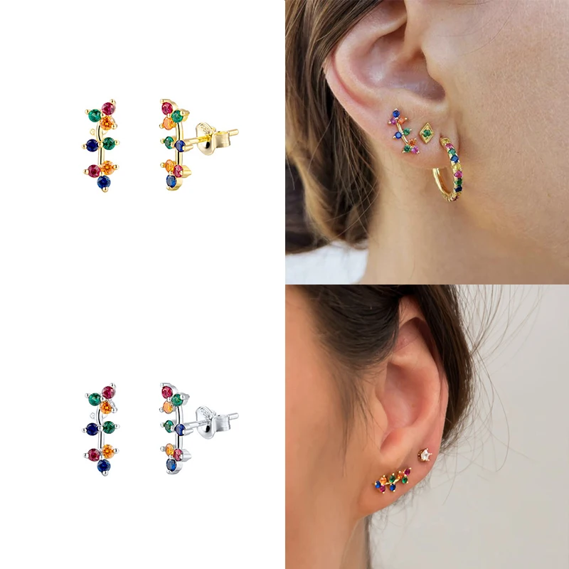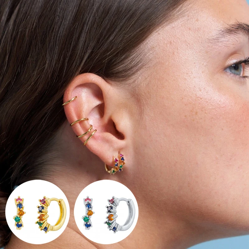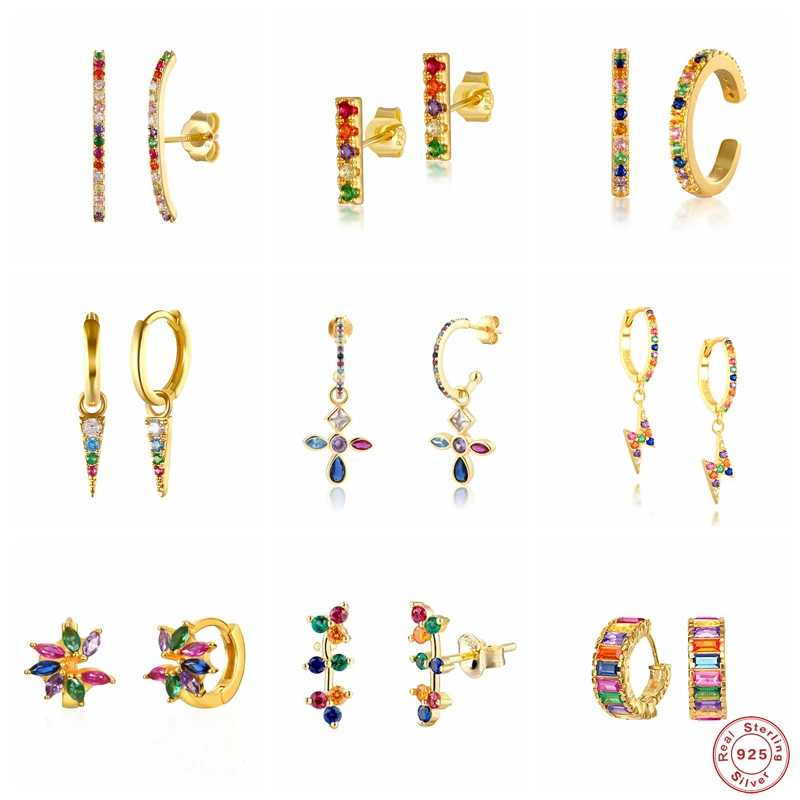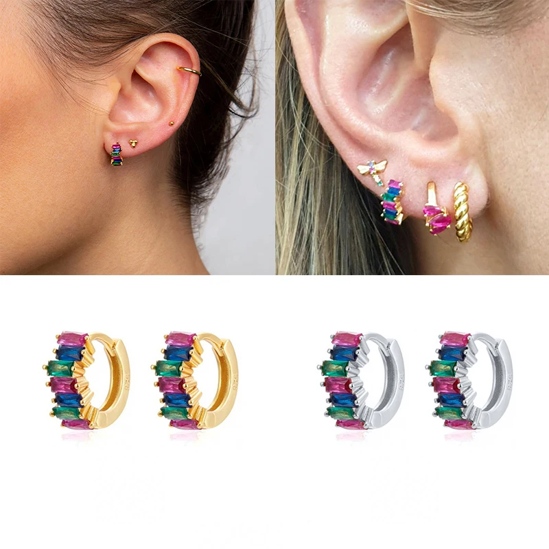Серьги-кольца из стерлингового серебра 925 пробы с цветными кристаллами коллекция радужных циркониевых мозаичных подвесных серег Huggie ювелирные изделия