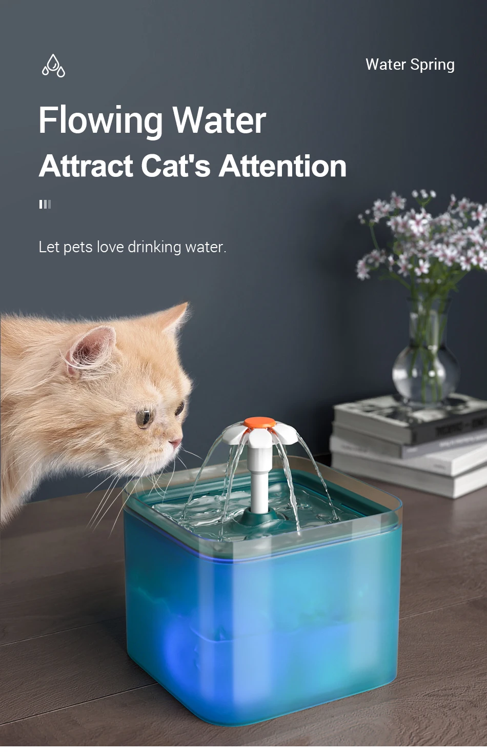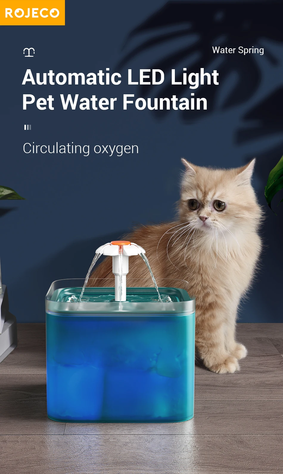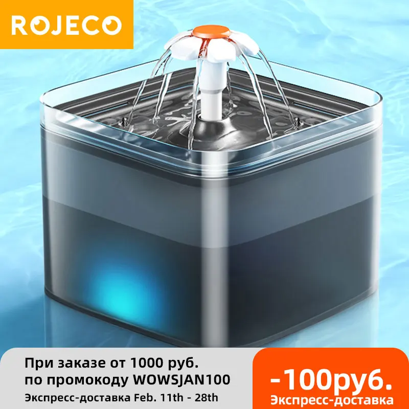 Автоматический Поильник ROJECO для кошек, питьевой фонтан с фильтром, 2 л, светодиодная подсветка, кормушка для домашних животных
