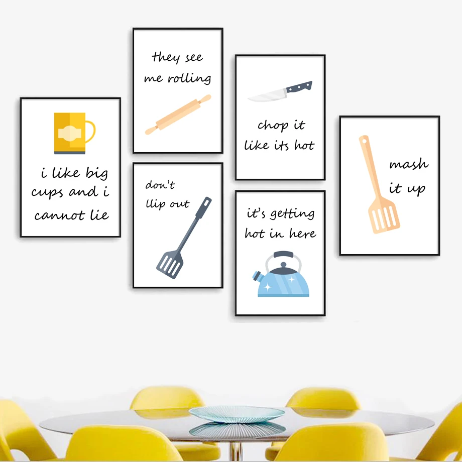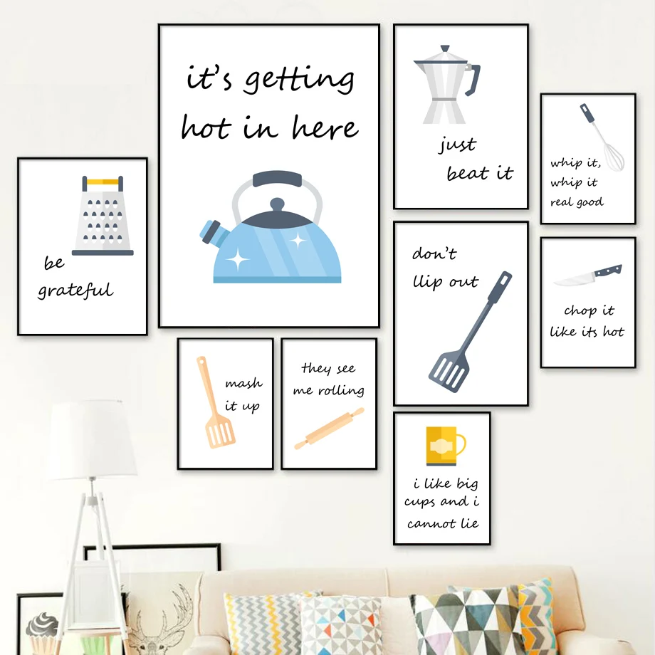 Настенная картина на холсте, милая посуда, нож, чашка, чайник, лопатка, постеры и принты в скандинавском стиле, настенные картины для гостиной, кухни