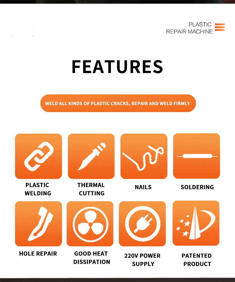 Функция 3: горячее разглаживание пластикового нагрева сглажено, сварено, удваивается по прочности и красиво добавляется.