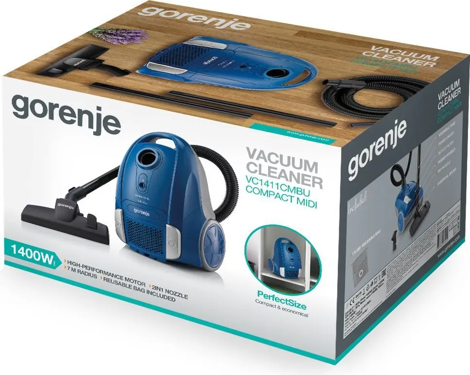 Пылесос VC1411CMBU компактный и комфортный помощник в вашем доме! Он оборудован мешком для сбора пыли, что позволяет избавиться от статического электричества..