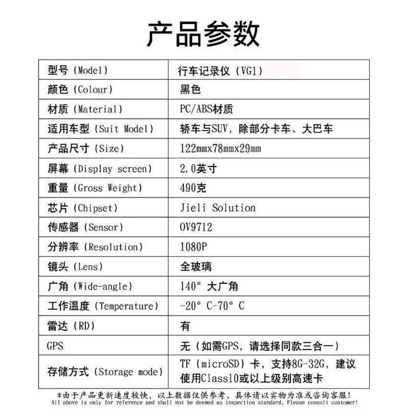 VG1 Автомобильный видеорегистратор с держателем 140 ° широкоугольный видеорегистратор регистратор данных g-сенсор камера детектор потока радаров T3EFOOTDTYХарактеристики: оснащен hd-камерой 1080P, с функцией ночного видения, даже в ночное время можно четко записывать.Чувствительный g-сенсор автоматически обнаруживает внезапное столкновение и немедленно сохраняет соответствующие кадры и восстанавливает место аварии.Полностеклянные линзы, широкий угол 140 °, поле зрения может безопасно покрыть 4 полосы движения, может восстановить положение вождения.Он фиксируется электростатической пастой, легко устанавливается или перемещается, и избежать риска падения.С функцией 2 в 1 детектора радаров и автомобильного видеорегистратора, он может записывать состояние вождения и эффективно сокращать поведение нарушения дорожного движения.Спецификация: Цвет: черныйМатериал: АБС-пластикЭкран дисплея: 2,0 дюйм (ов)Вес брутто: 490 гНабор микросхем: JieliДатчик: OV9712Разрешение: 1080PОбъектив: СтеклоШирокий угол: 140 ° Широкий уголРабочая температура:-20 ℃-70 ℃Радары: ДаGPS: нетРежим хранения: карта TF (8-32G) рекомендует использовать высокоскоростную карту класса 10 или вышеРазмер: прибл. 12,2x7,8x2,9 см/4,8x3,07x1,14 дюйм (ов)Посылка включает в себя: 1 шт. Автомобильный видеорегистратор1 шт. DVR кронштейн1 шт. автомобильное зарядное устройство1 шт. Руководство пользователяПримечание: возможны отклонения на 1-2 см вследствие измерений вручную.Из-за различных дисплеев каждого компьютера изображения могут не отражать фактический цвет товара.
